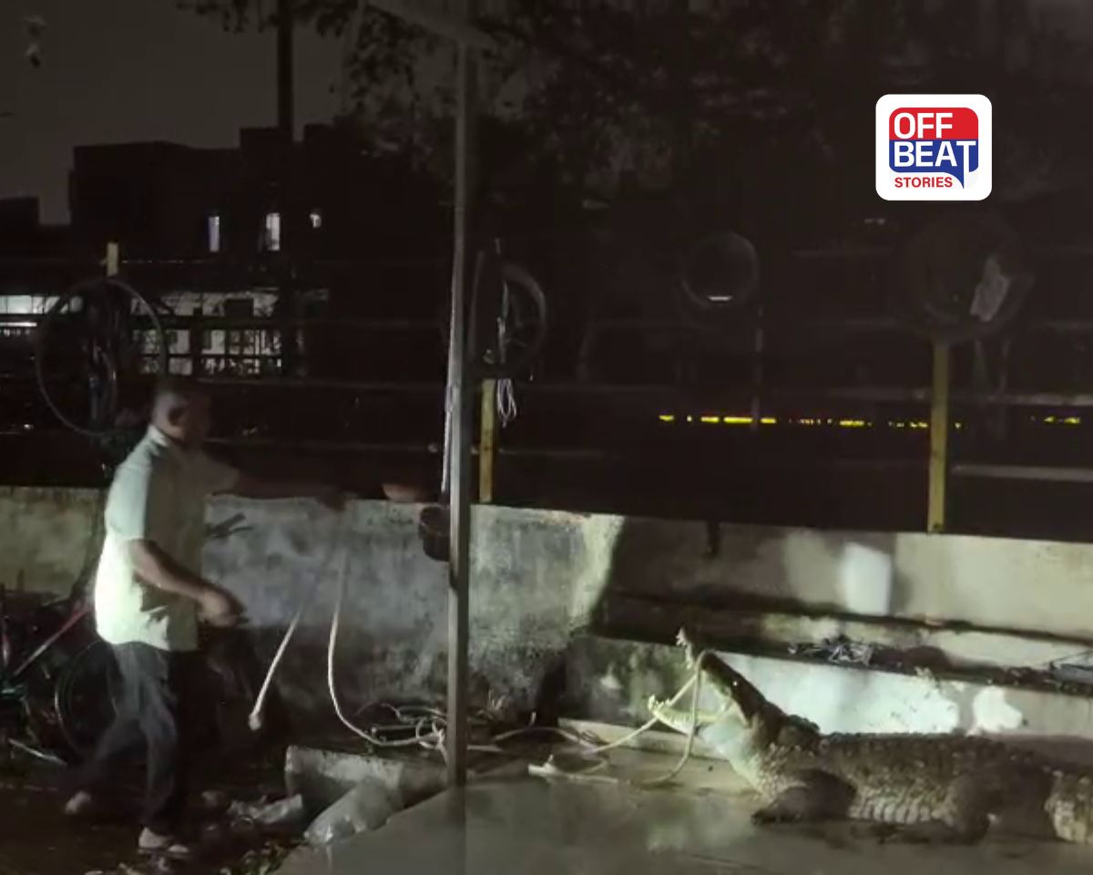 પાદરા નગરના મધ્યમાં આવેલા રામેશ્વર તળાવમાં વરસાદને કારણે પાણીની સપાટીમાં નોંધપાત્ર વધારો થયો છે. પાણી વધતા એક મહાકાય મગર તળાવની બહાર નીકળીને નજીકના રહેણાંક વિસ્તારમાં આવી ચઢ્યો હતો. મધરાતે જ્યારે રસ્તા પર આ વિશાળકાય મગર લટાર મારતો જોવા મળ્યો, ત્યારે સ્થાનિક રહીશોમાં નાસભાગ મચી ગઈ હતી. ઘટનાની જાણ થતા જ વન વિભાગ અને એનિમલ રેસ્ક્યુ ટીમ ઘટનાસ્થળે પહોંચી હતી. અંધારામાં મગરને ટ્રેક કરવો મુશ્કેલ હતો, પરંતુ ટીમે કુશળતાપૂર્વક મગરને દોરડા અને પાંજરાની મદદથી સુરક્ષિત રીતે પકડી પાડ્યો હતો.