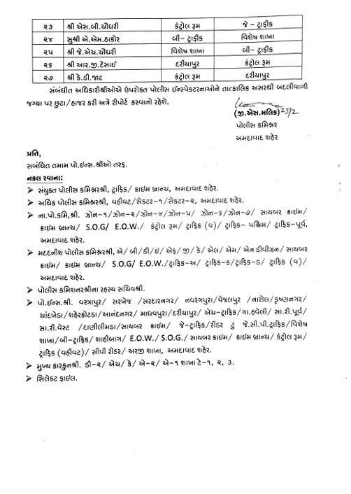 27 પોલીસ ઇન્સ્પેક્ટરની બદલી