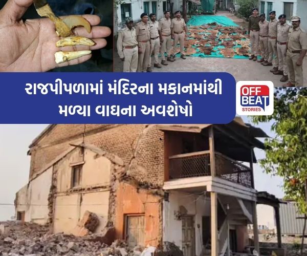 Rajpipla Tiger Remains : રાજપીપળામાં વાઘના શિકારના એક મોટા રેકેટનો ચોંકાવનારો પર્દાફાશ થયો છે. શહેરના ધર્મેશ્વર મહાદેવ મંદિરના રીનોવેશન દરમિયાન મંદિર પરિસરમાં આવેલા એક જૂના મકાનમાંથી કુલ 40 વાઘના ચામડાં અને 133 વાઘના નખ મળી આવ્યા છે. જેમાંથી 37 આખા વાઘના ચામડા હોવાનું સામે આવ્યું છે. ગુજરાતમાં સંભવતઃ આટલી મોટી સંખ્યામાં વાઘના અવશેષો મળી આવ્યા હોવાનો આ પ્રથમ કિસ્સો હોવાનું માનવામાં આવી રહ્યું છે.