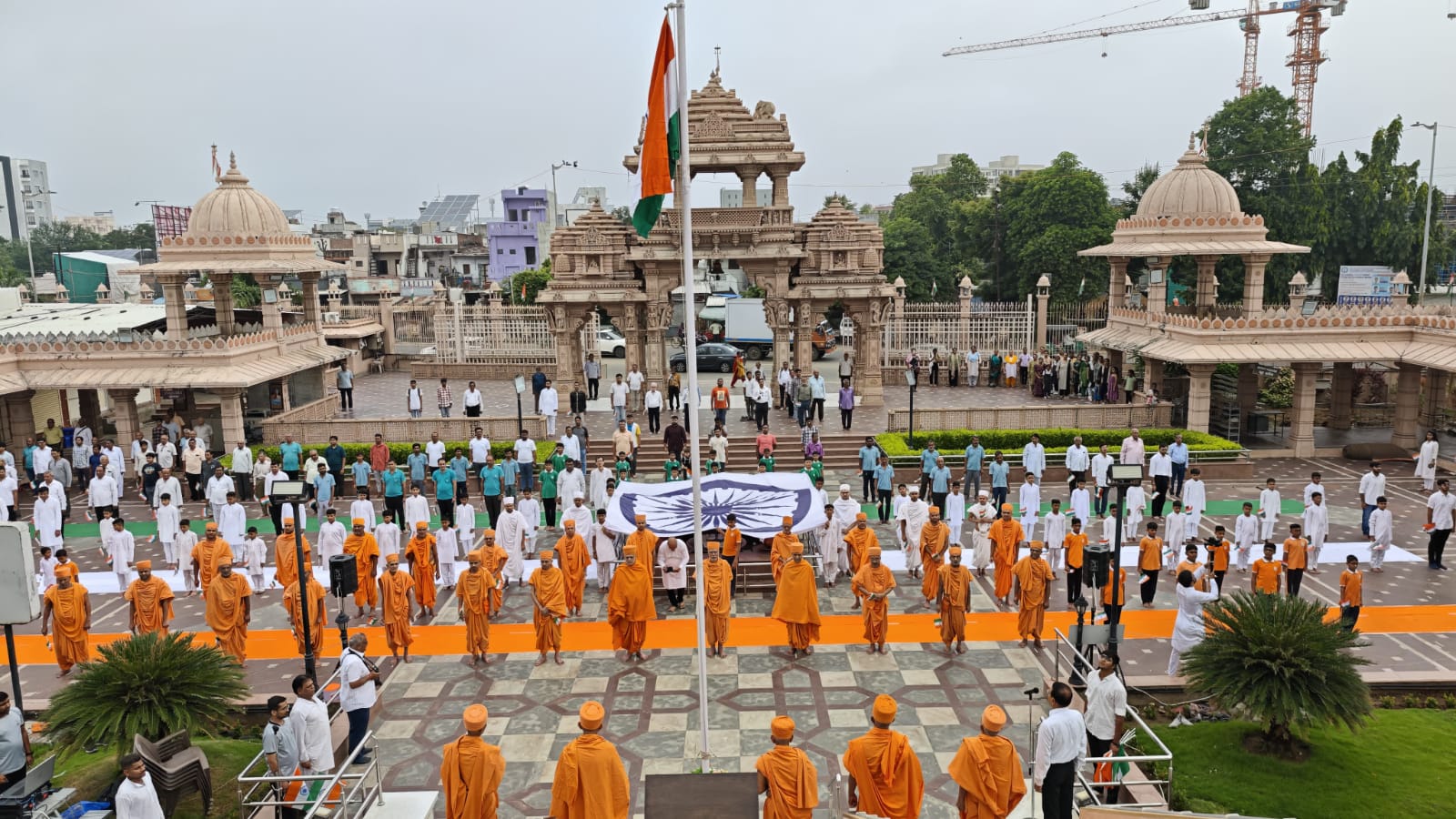 નવખંડ ધરામાં રાષ્ટ્ર સંસ્કૃતિ નો ધ્વજ સદાય લહેરાતો રાખનાર બી એ પી એસ સંસ્થા દ્વારા સદૈવ રાષ્ટ્ર ભક્તિ સહ પ્રભુ ભક્તિ ના મુદ્રા લેખ સહ આ કાર્યક્રમ માં મોટી સંખ્યામાં પૂજ્ય સંતો સાથે ભક્તજનો એ સંમિલિત થઈ આન,બાન, શાન સમ તિરંગા ને સલામી આપી હતી.