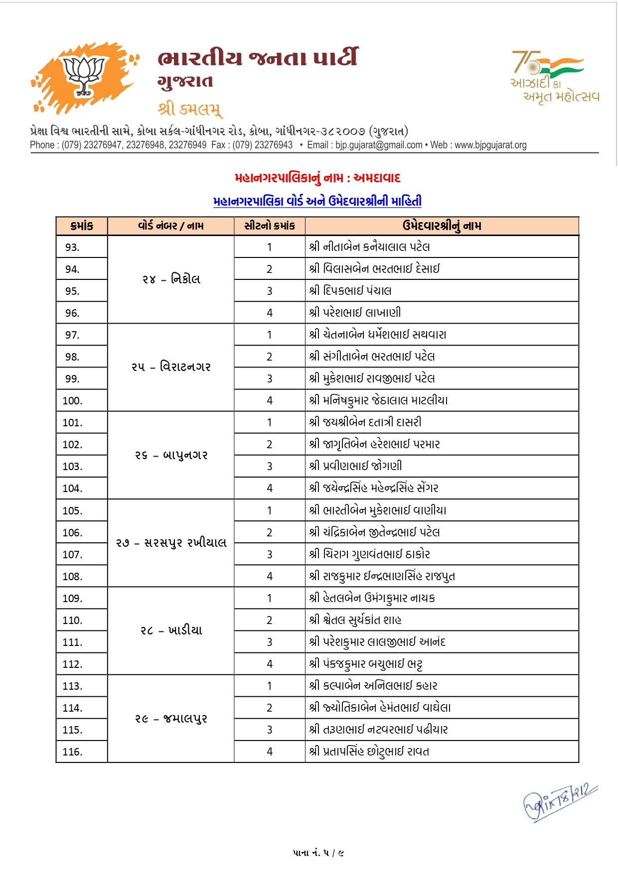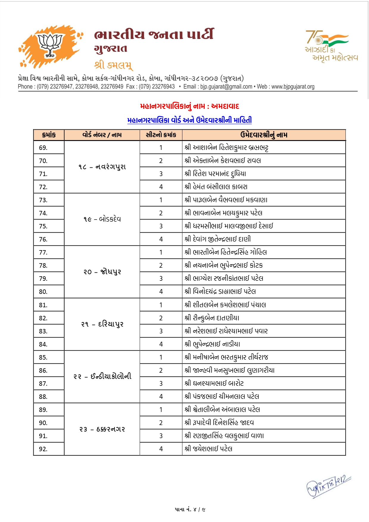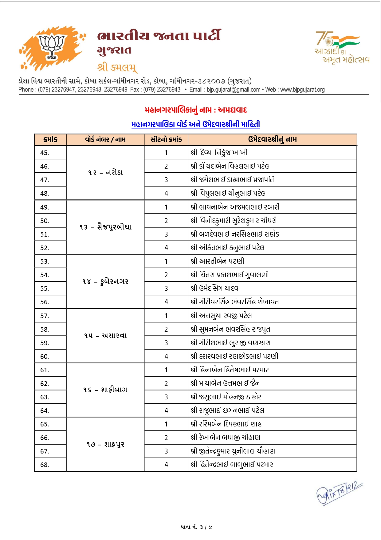 નરોડા (વોર્ડ-12): અહીં ડો. ચંદાબેન પટેલ અને જયેશભાઈ પ્રજાપતિ જેવા અનુભવી અને લોકપ્રિય ચહેરાઓને સ્થાન મળ્યું છે.