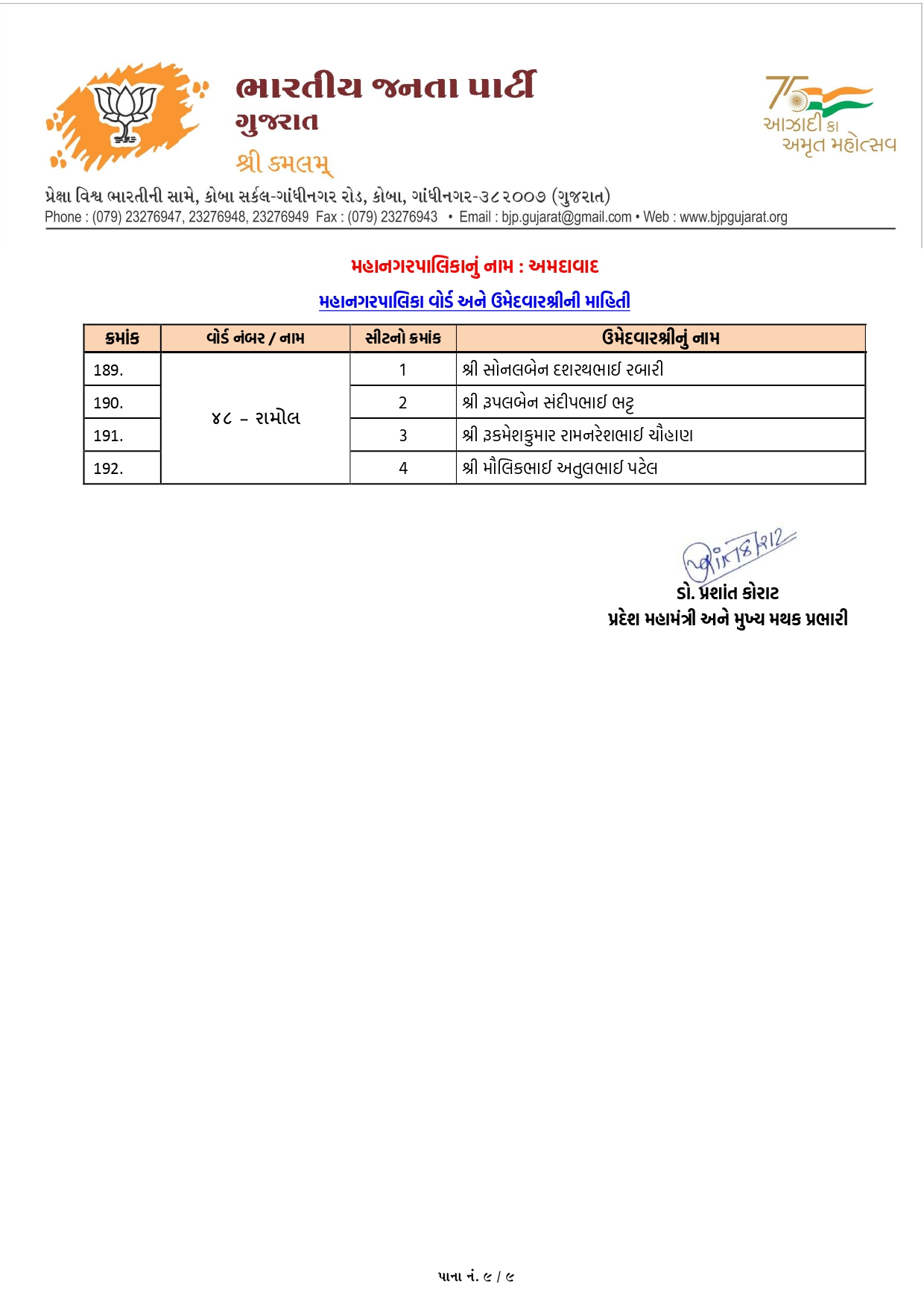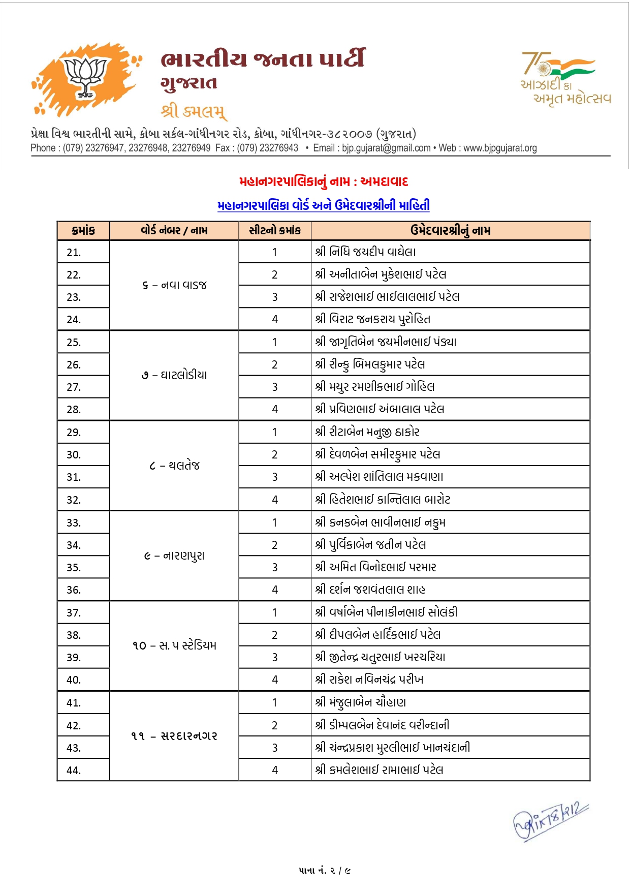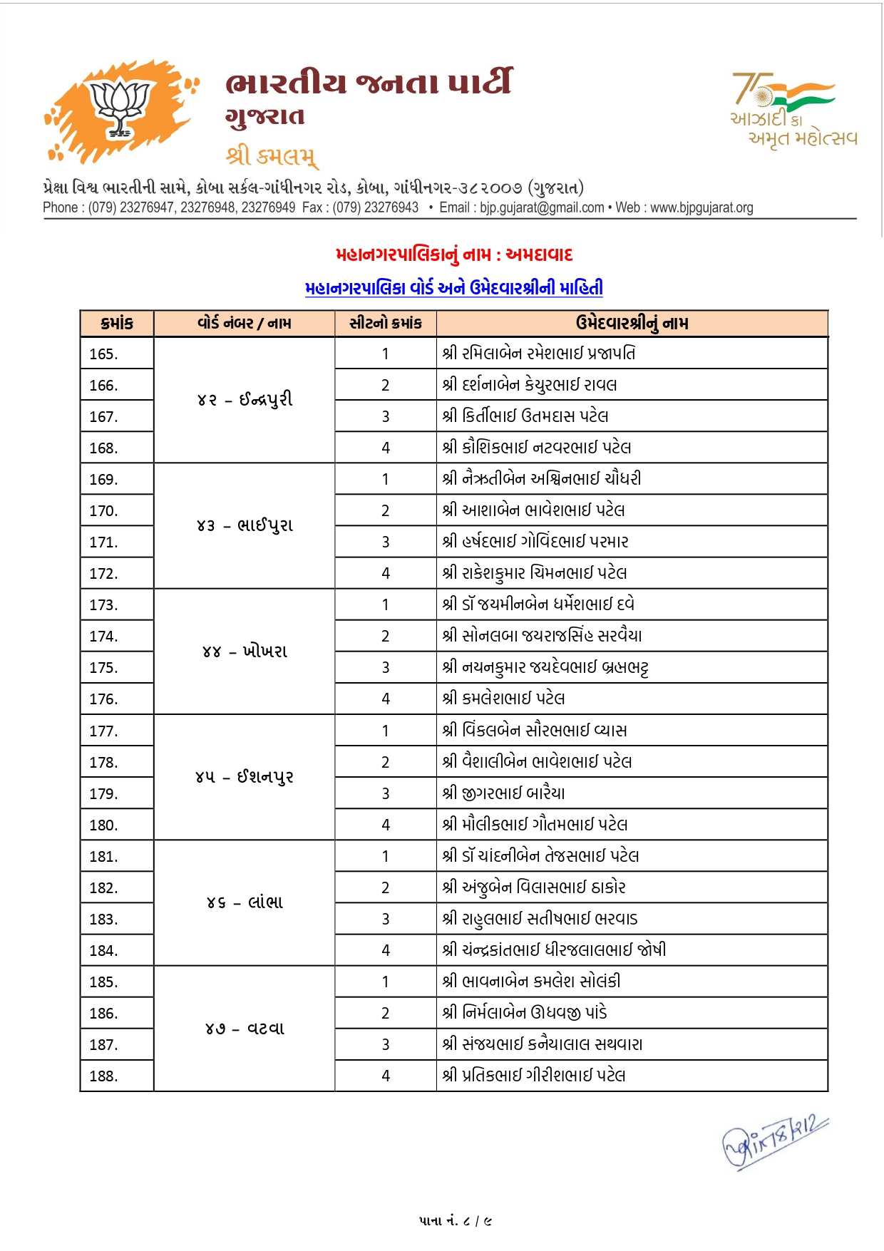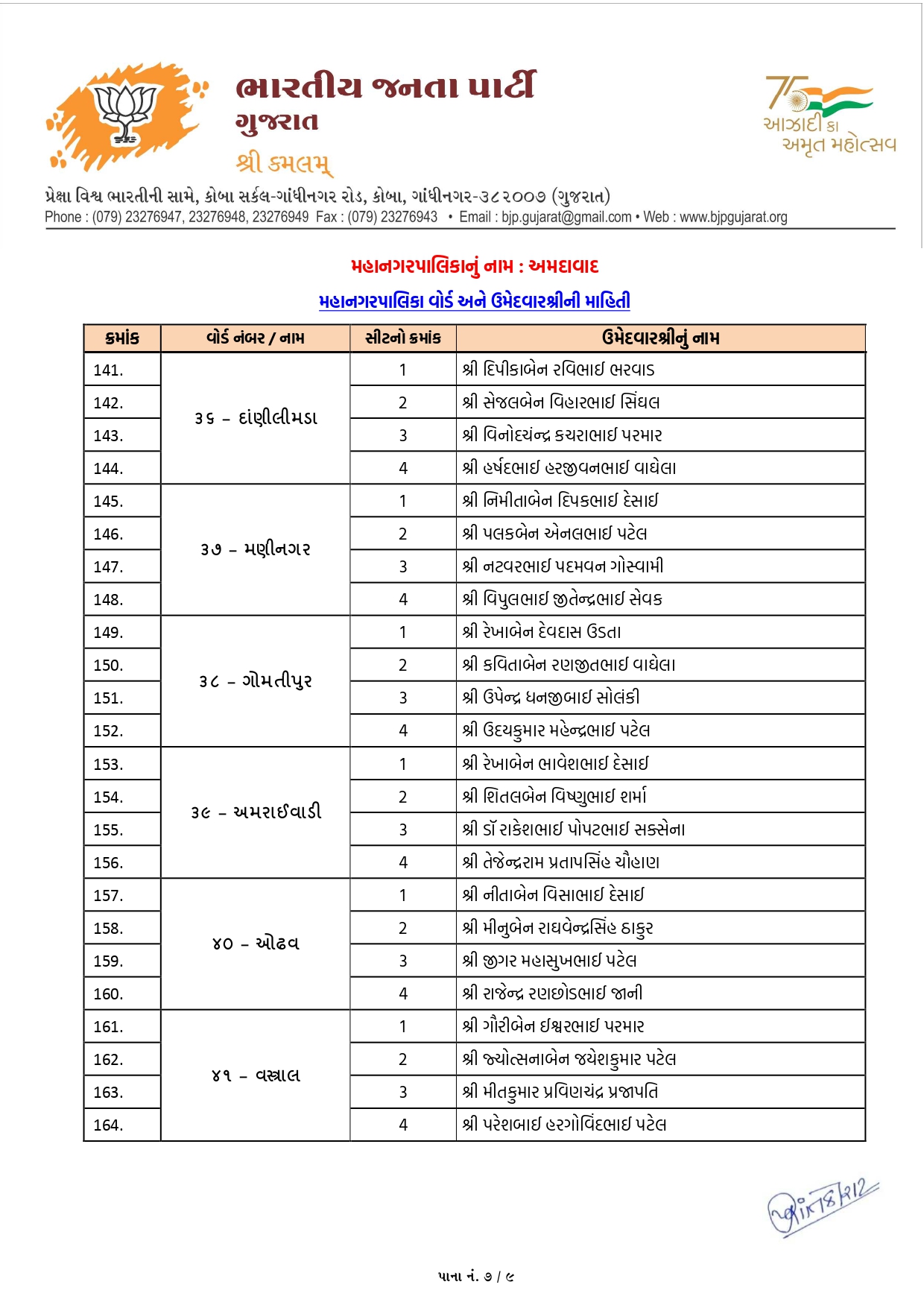 નરોડા (વોર્ડ-12): અહીં ડો. ચંદાબેન પટેલ અને જયેશભાઈ પ્રજાપતિ જેવા અનુભવી અને લોકપ્રિય ચહેરાઓને સ્થાન મળ્યું છે.