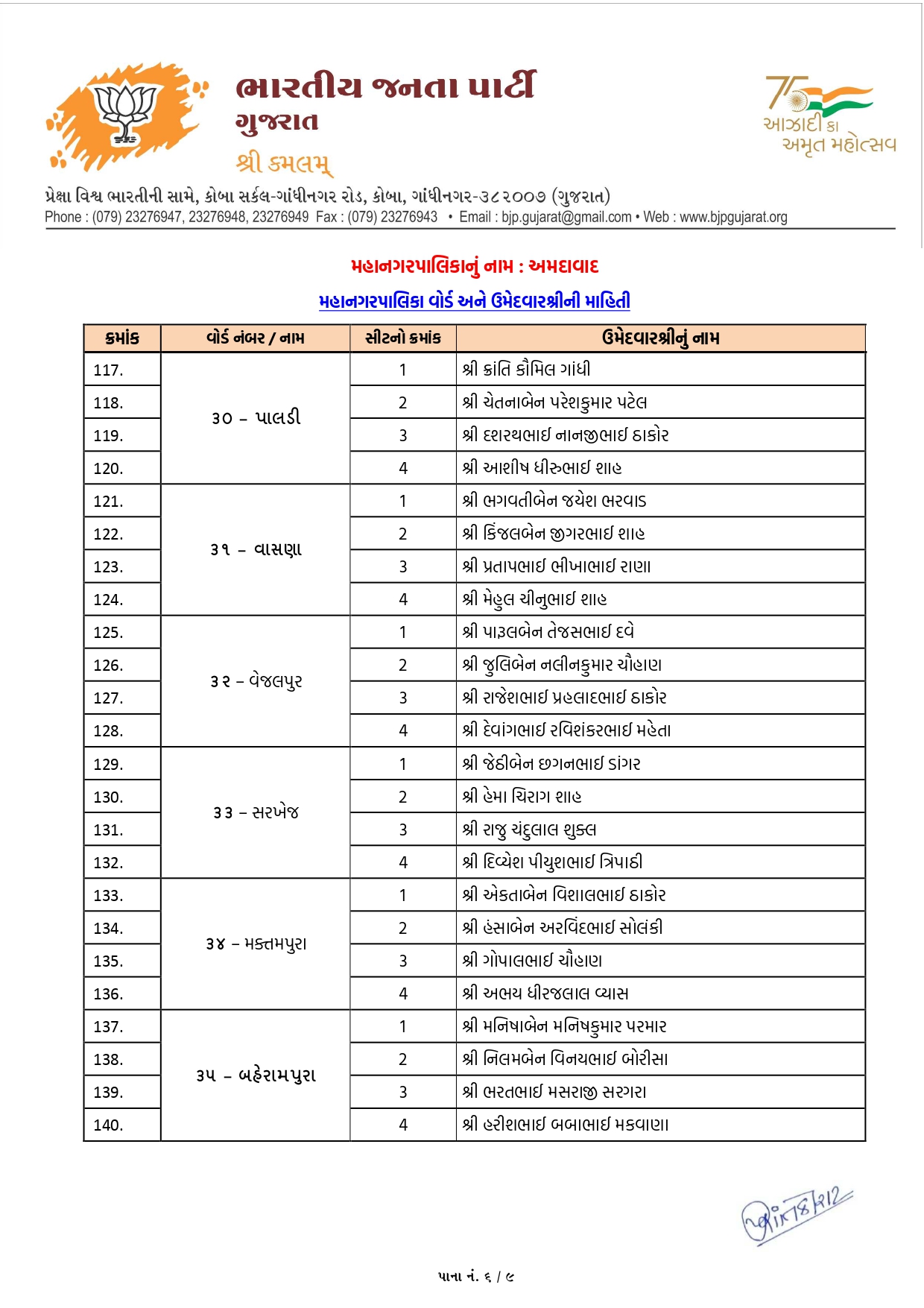 ગાંધીનગર સ્થિત કમલમ્ કાર્યાલયથી મોડી રાત્રે જાહેર થયેલી આ યાદી સ્પષ્ટ કરે છે કે ભાજપ સહેજ પણ કચાશ રાખવા માંગતું નથી. હવે આગામી દિવસોમાં આ ઉમેદવારો જોરશોરથી પ્રચાર અભિયાન શરૂ કરશે. અમદાવાદની જનતા ફરી એકવાર ભાજપ પર વિશ્વાસ મૂકે છે કે કેમ તે જોવું રસપ્રદ રહેશે.