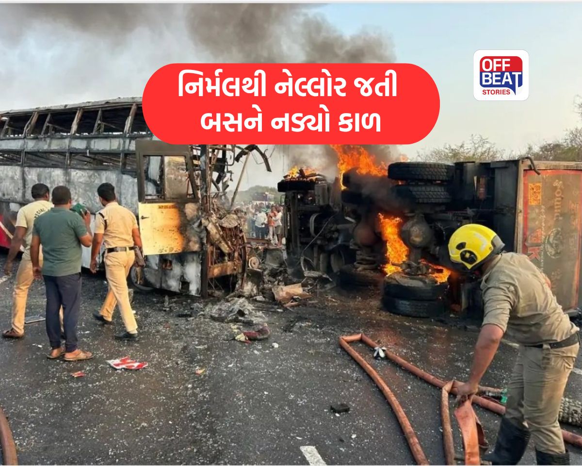 મળતી માહિતી મુજબ, હરિકૃષ્ણા ટ્રાવેલ્સની આ ખાનગી બસ તેલંગાણાના નિર્મલથી આંધ્ર પ્રદેશના નેલ્લોર જઈ રહી હતી. સવારે અંદાજે 6:00 વાગ્યાની આસપાસ જ્યારે મુસાફરો ગાઢ નિદ્રામાં હતા, ત્યારે પ્રકાશમ જિલ્લાના માર્કાપુરમ ડિવિઝનમાં રાયવરમ પાસે સામેથી આવતા એક ટીપર ડમ્પર સાથે બસની સામસામે ટક્કર થઈ હતી. ટક્કર બાદ બસના એન્જિનમાં બ્લાસ્ટ થયો અને જોતજોતામાં આખી બસ આગના ગોળામાં ફેરવાઈ ગઈ હતી.