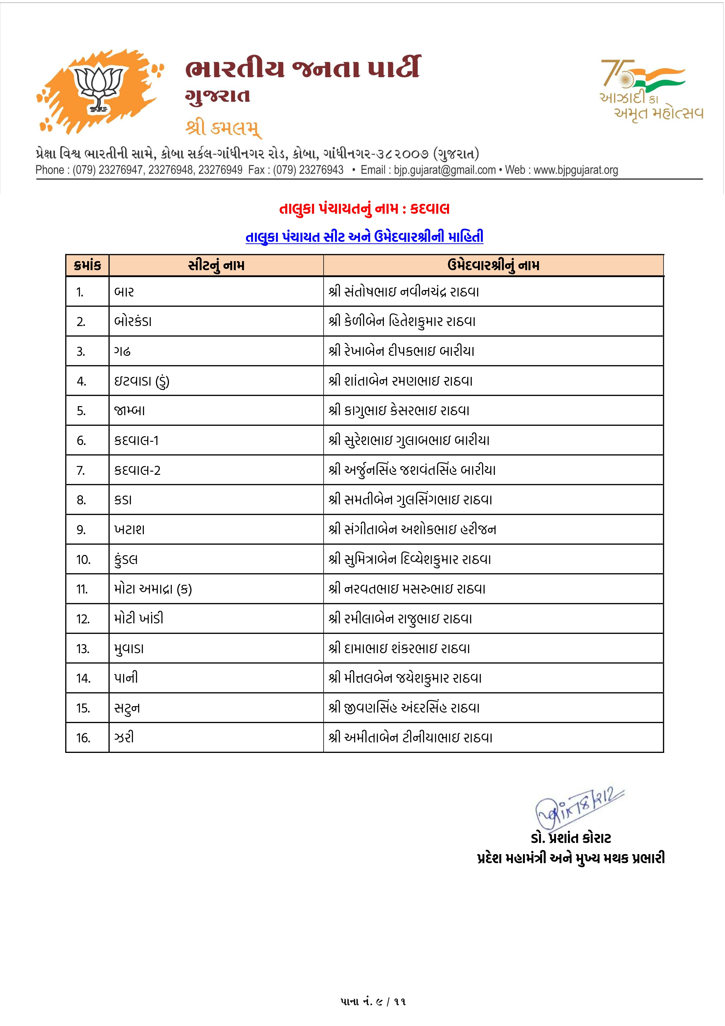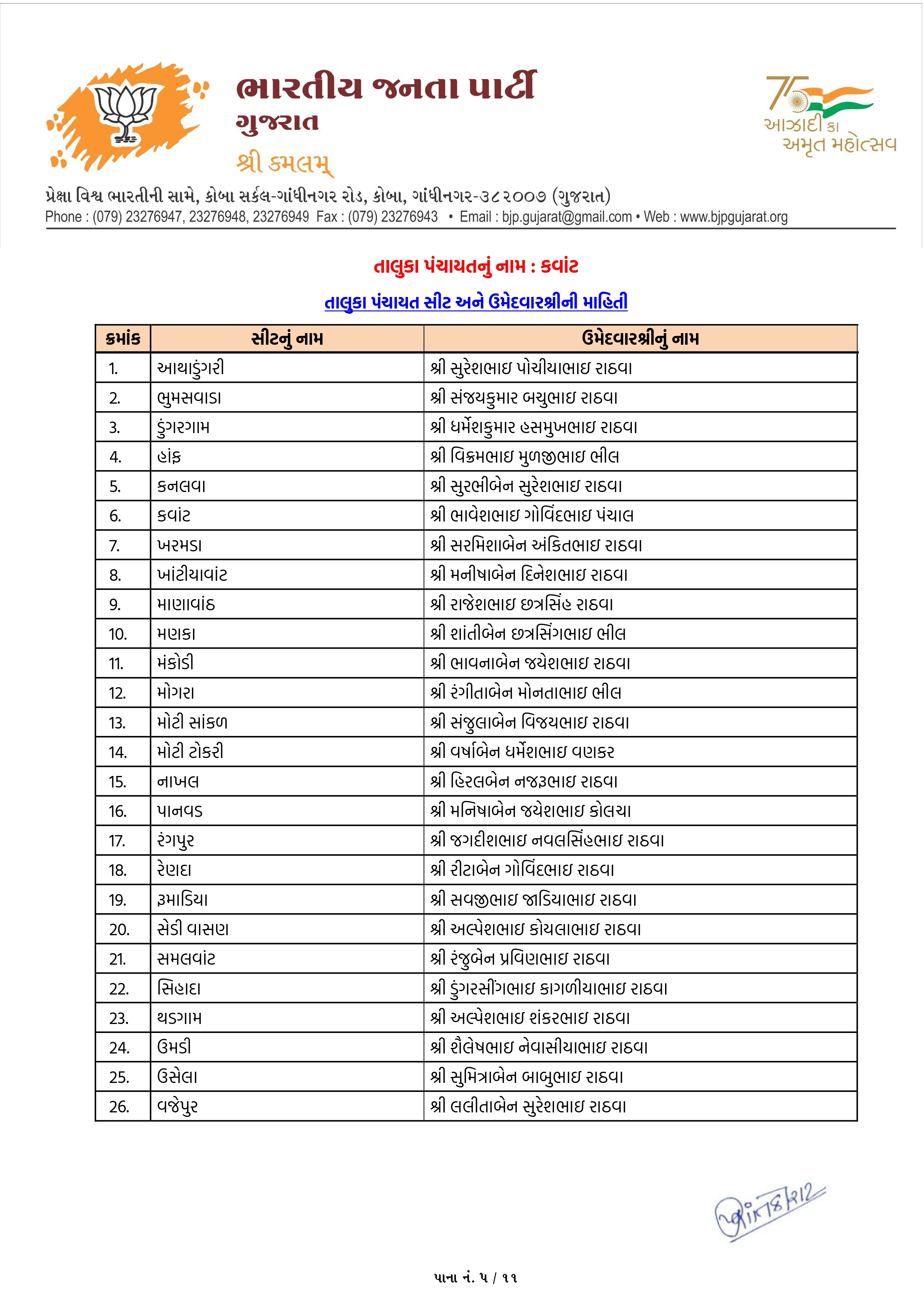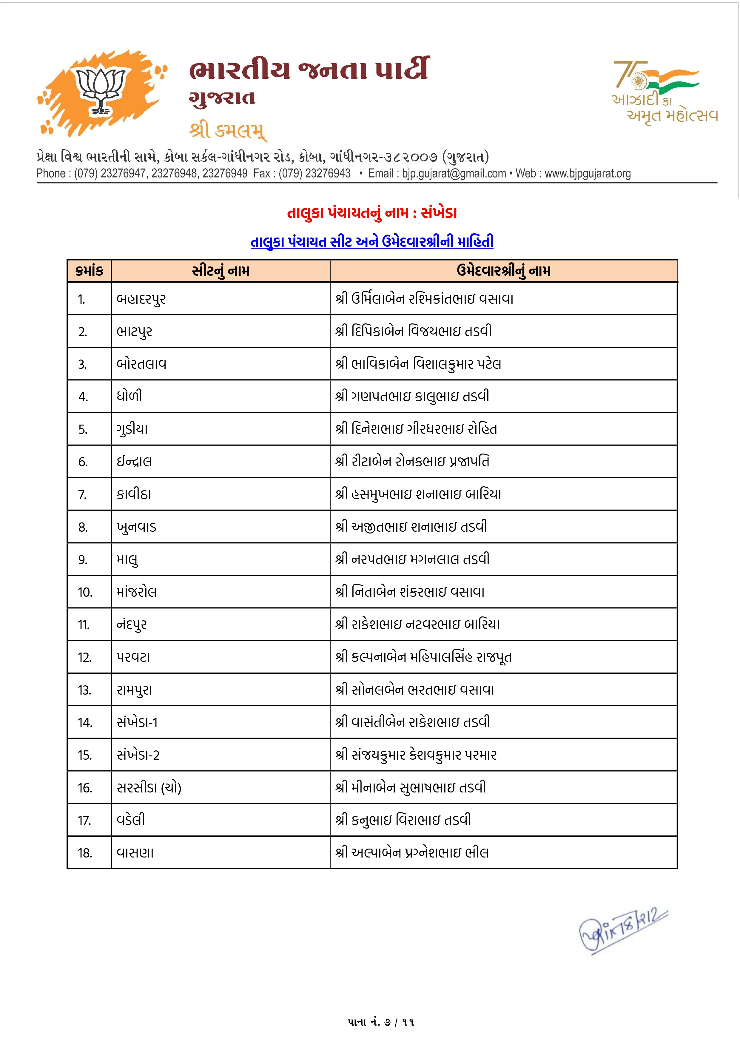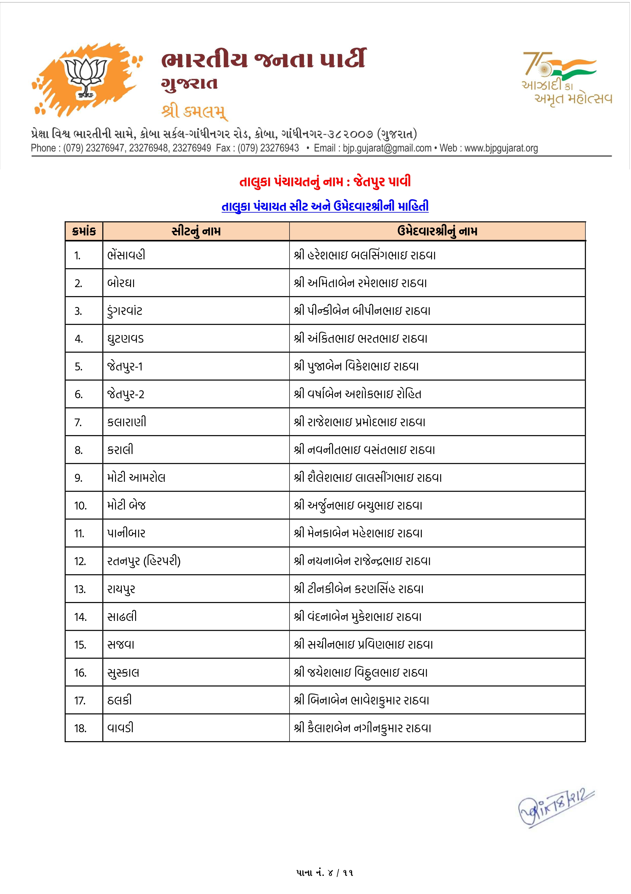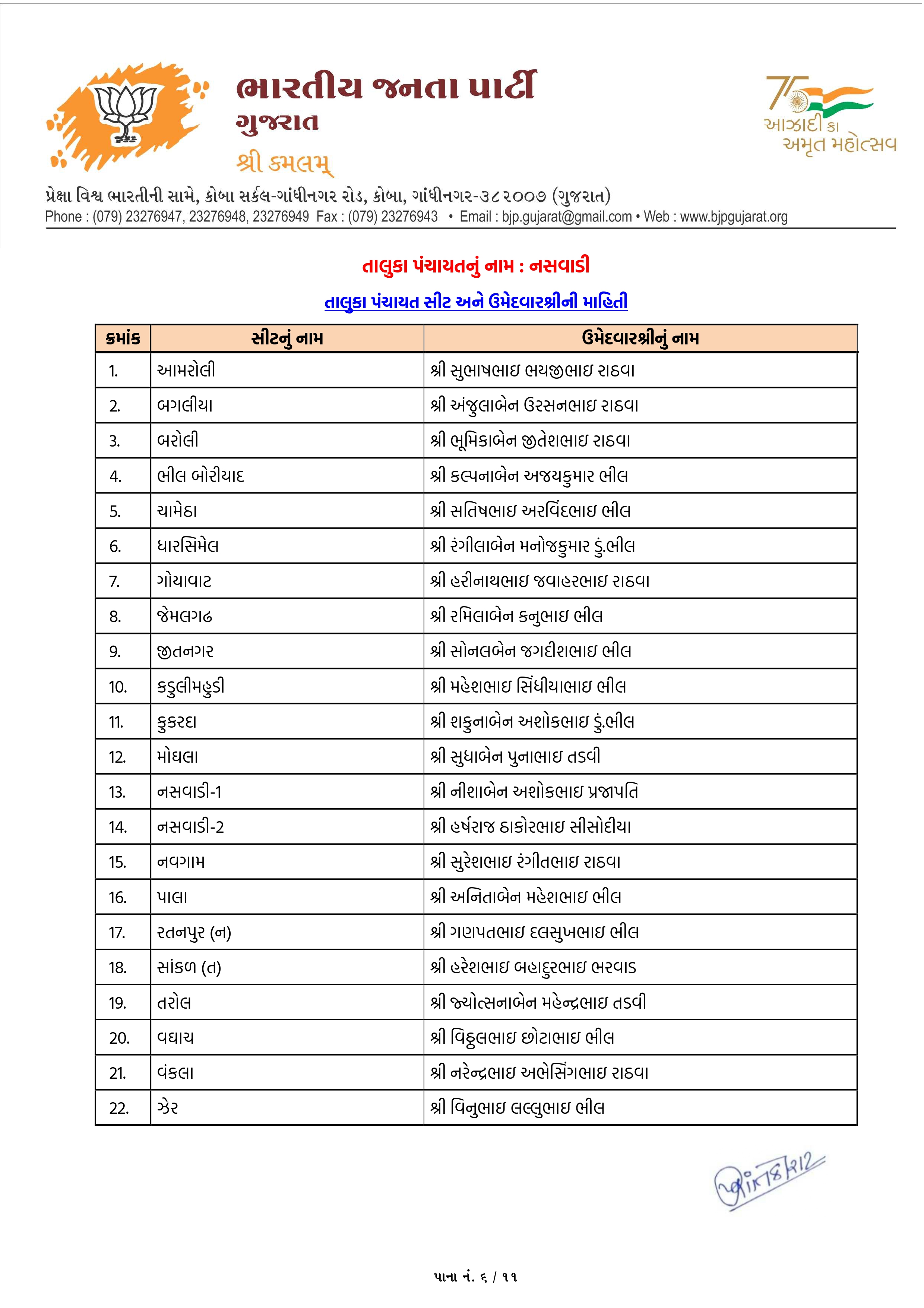 ગુજરાતમાં સ્થાનિક સ્વરાજ્યની ચૂંટણીને લઈને ભાજપે પોતાની રાજકીય ગતિ વધુ તેજ કરી છે. અમદાવાદ, ખેડા-નડિયાદમાં ઉમેદવારો જાહેર કર્યા બાદ હવે મોડી રાત્રે ભાજપે છોટા ઉદેપુર વિસ્તાર માટે પણ ઉમેદવારોની યાદી જાહેર કરી દીધી છે. આ સાથે ચૂંટણીને લઈને રાજકીય હલચલ વધુ તેજ બની છે.