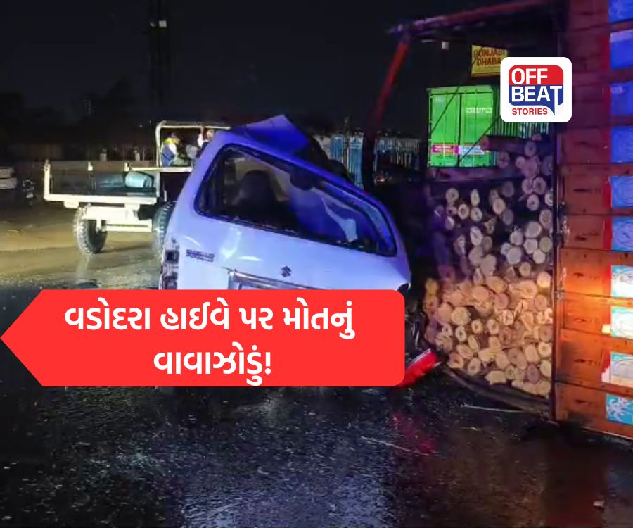 વડોદરાના નેશનલ હાઈવે નંબર 48 પર ધન્યાવી ચોકડી પાસે મોડી રાત્રે એક ભયાનક અકસ્માતની ઘટના સર્જાઈ હતી. કુદરતી આફત અને વાહન ચાલકની સમયસૂચકતા વચ્ચે બનેલી આ ઘટનામાં સદનસીબે મોટી જાનહાનિ ટળી છે, પરંતુ અકસ્માત એટલો પ્રચંડ હતો કે, જોનારા લોકોના કાળજા કંપી ઉઠ્યા હતા. અચાનક ફૂંકાયેલા તેજ પવન અને વાવાઝોડાને કારણે હાઈવે પર વીજળીનો થાંભલો ધરાશાયી થતા ટ્રક ચાલકે સ્ટેયરિંગ પરથી કાબુ ગુમાવ્યો હતો અને જોતજોતામાં વિશાળકાય ટ્રક પલટી ખાઈ ગઈ હતી. આ પલટી મારેલી ટ્રક પાછળથી આવી રહેલી એક ઇકો કાર પર જઈ પડતા કારનો કચ્ચરઘાણ વળી ગયો હતો.