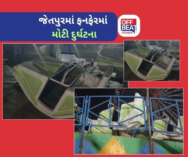 જેતપુર શહેરમાં દીપાવલીની ઉજવણીને પગલે રોટરી ક્લબ દ્વારા ફનફેર મેળાનું આયોજન કરવામાં આવ્યું હતું. આ મેળામાં વિવિધ રમૂજી રાઈડ્સ શરૂ કરવામાં આવી હતી, જેમાં “બ્રેક ડાન્સ” નામની રાઈડની અચાનક મોટી દુર્ઘટના બની હતી. રાઈડ ચાલી રહી હતી તે દરમિયાન કોઈ ટેકનિકલ ખામી કે લોખંડનો ભાગ તૂટી જવાથી રાઈડનો એક ભાગ ધરાશાયી થયો હતો.