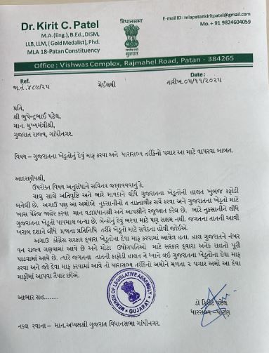 MLA કિરીટ પટેલે CM ભૂપેન્દ્ર પટેલને લખ્યો પત્ર