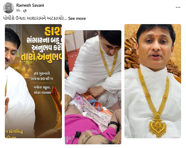 [3] ‘સદગુરુ પ્રદીપજી’એ સુરતમાં આશ્રમ/ ધામના નામે લોકો પાસેથી લાખો રૂપિયા ઉઘરાવ્યા છે અને છેતરપિંડી કરી છે. જેઓ પૈસા પરત માંગતા તેમને મારી નાખવાની ધમકી આપતો હતો. તે અંગે પોલીસ અલગ ગુનો દાખલ કરશે? 2018માં, પૈસાની ઉઘરાણી કરનારાઓને ડરાવવા આત્મહત્યાનું નાટક પણ તેણે કર્યું હતું!