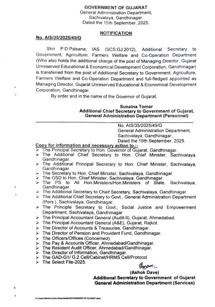 આખરે સરકારે બિન અનામત નિગમમા MD ની નિયુક્તિ કરી છે. પી ડી પલસાણાને બિન અનામત નિગમમાં મૂકવામાં આવ્યા છે. અત્રે જણાવીએ કે, આ જગ્યા ચાર્જમાંમાં હોવાના કારણે કામો અટકી પડતાનો આક્ષેપ થતાં હતા. ઉલ્લેખનીય વાત એ છે કે, આ મામલે પાટીદાર સમાજના તેમજ ક્ષત્રિય સમાજના આગેવાનોએ થોડા દિવસ અગાઉ સરકારમાં માગ પણ કરી હતી. ગાંધીનગરમાં બિન અનામત આયોગમાં ચેરમેન સહિતના હોદ્દા ભરવાની પણ માગ કરી છે.