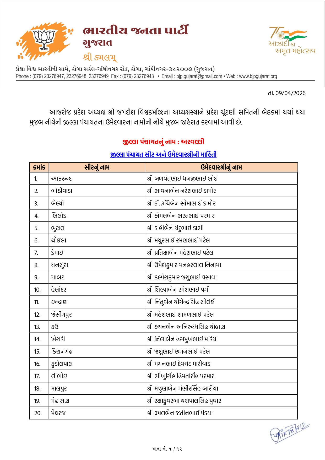 Gujarat Election Ticket List: ગુજરાતમાં પાલિકા અને પંચાયતની આગામી ચૂંટણીઓનો માહોલ ગરમાયો છે. લાંબા સમયની રાહ જોયા બાદ આખરે ભારતીય જનતા પાર્ટીએ તેના ઉમેદવારોની જાહેરાતનો સિલસિલો શરૂ કરી દીધો છે. ભાજપે તેની પ્રથમ યાદીમાં સુરેન્દ્રનગર મહાનગરપાલિકા અને અરવલ્લી જિલ્લાની વિવિધ બેઠકો માટેના નામો પર મહોર મારી દીધી છે. ત્યારબાદ વાવ-થરાદનું લિસ્ટ જાહેર કરાયું છે.