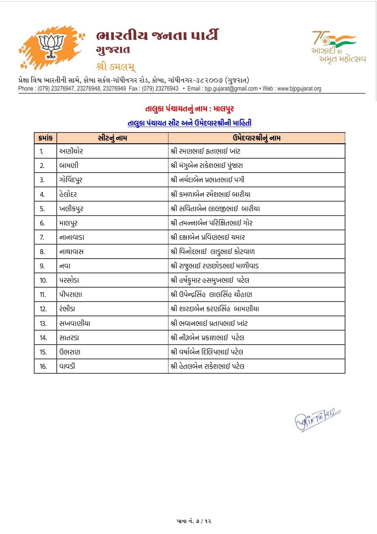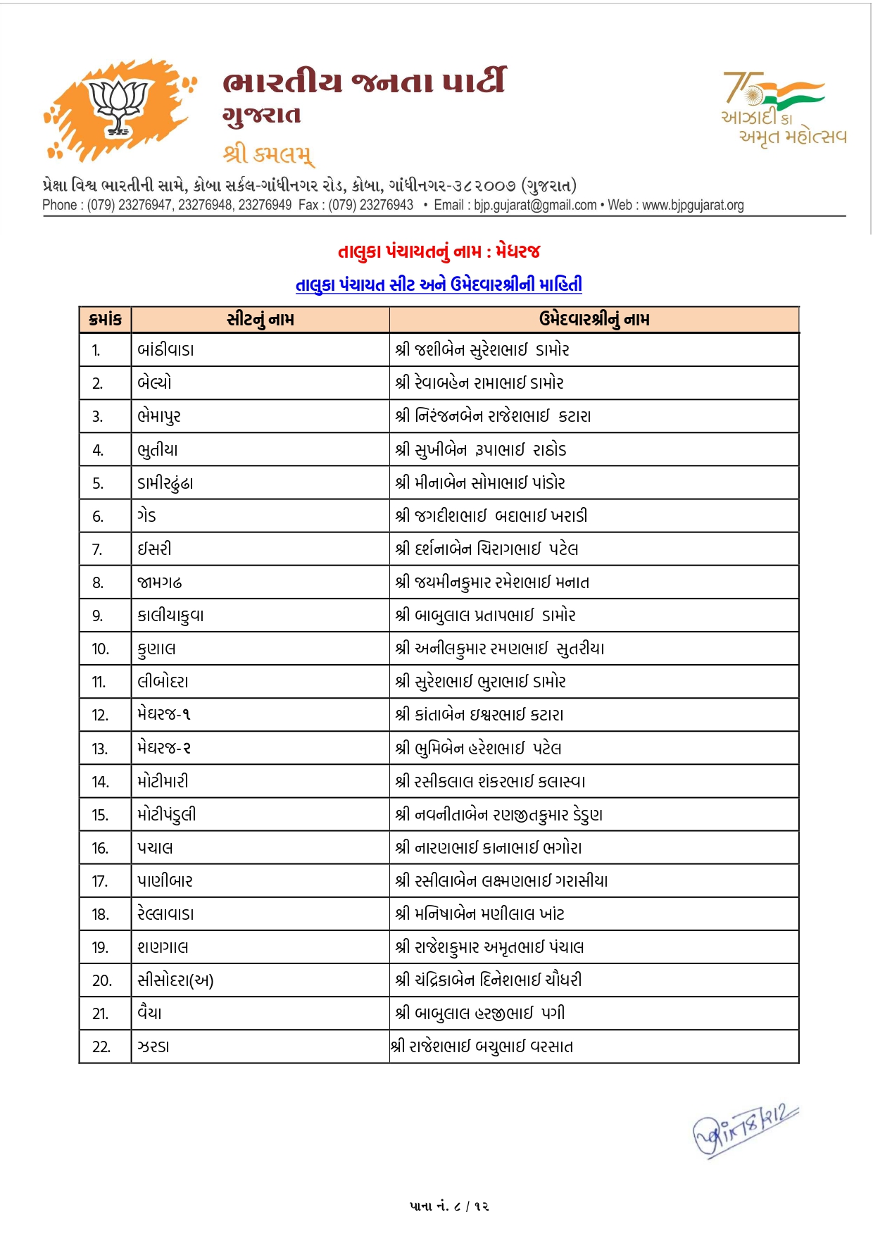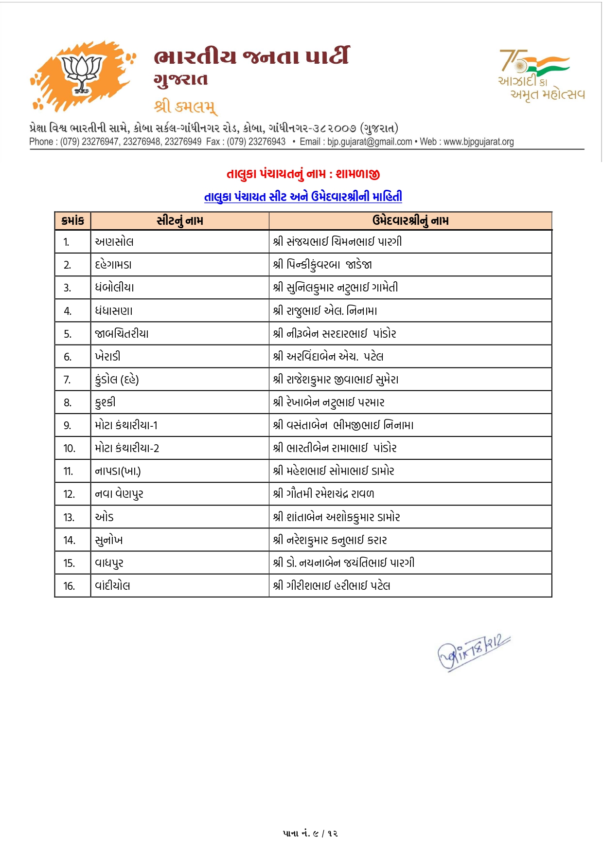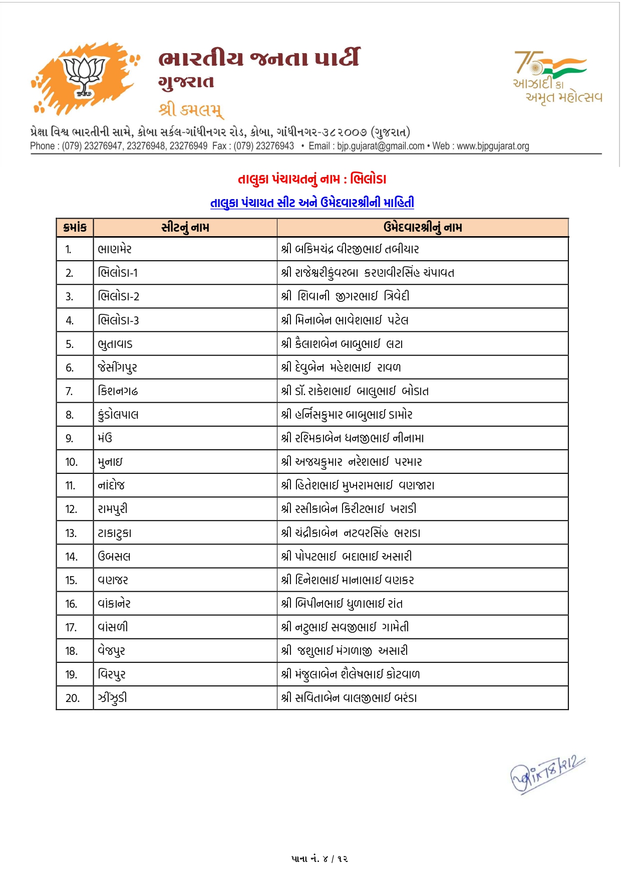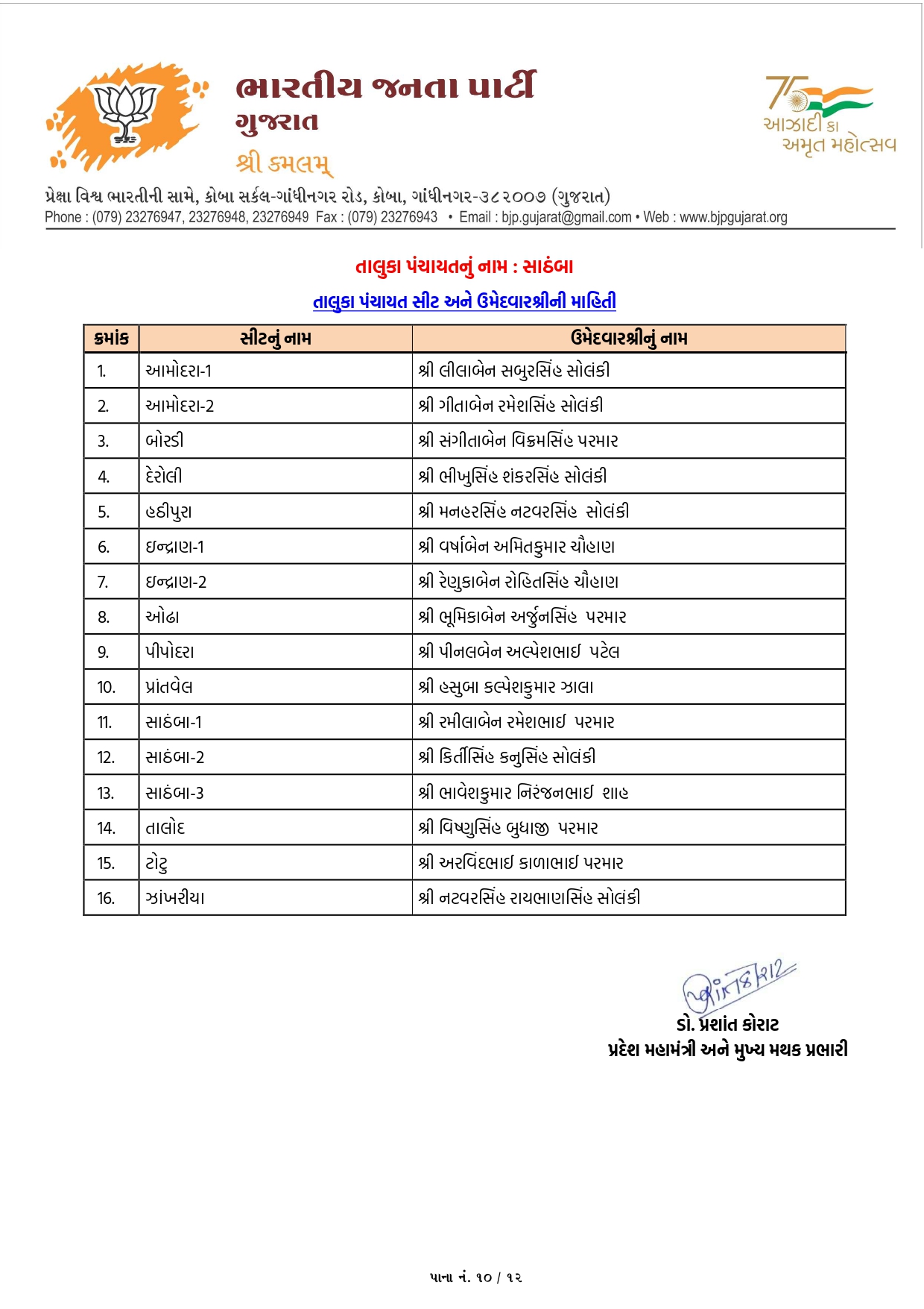 સુરેન્દ્રનગર મહાનગરપાલિકાના ભાજપના તમામ 52 ઉમેદવારોના નામની જાહેરાત