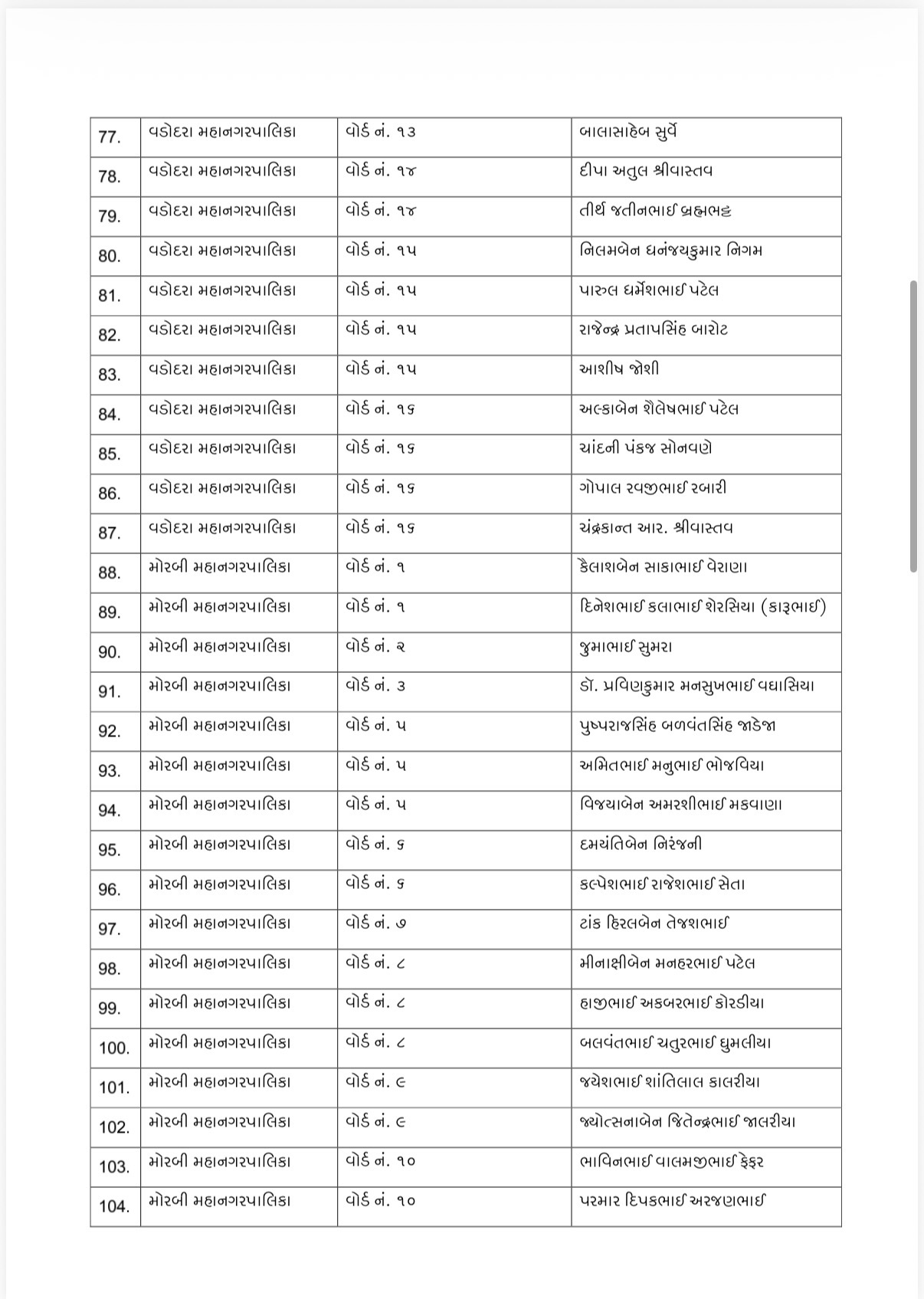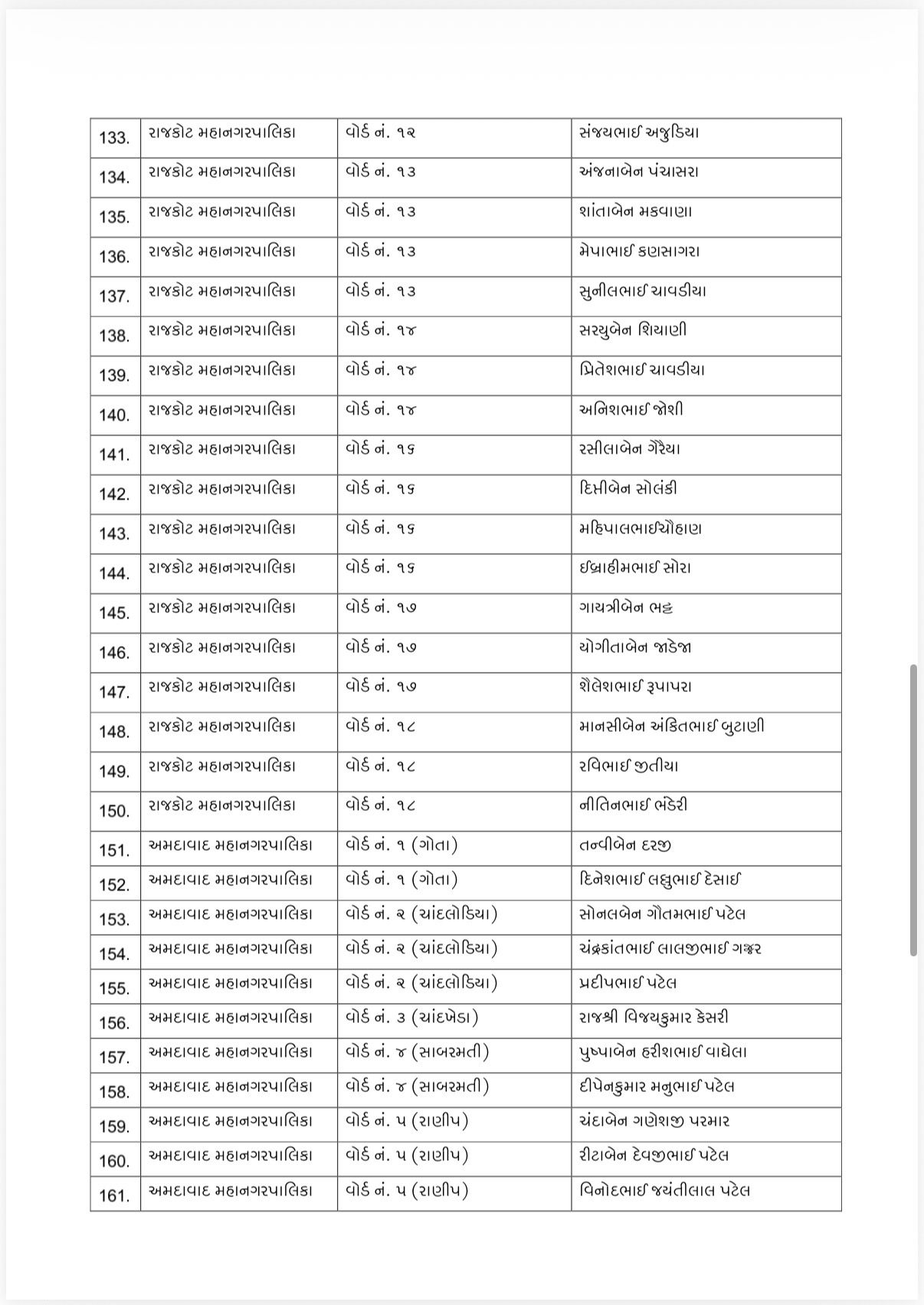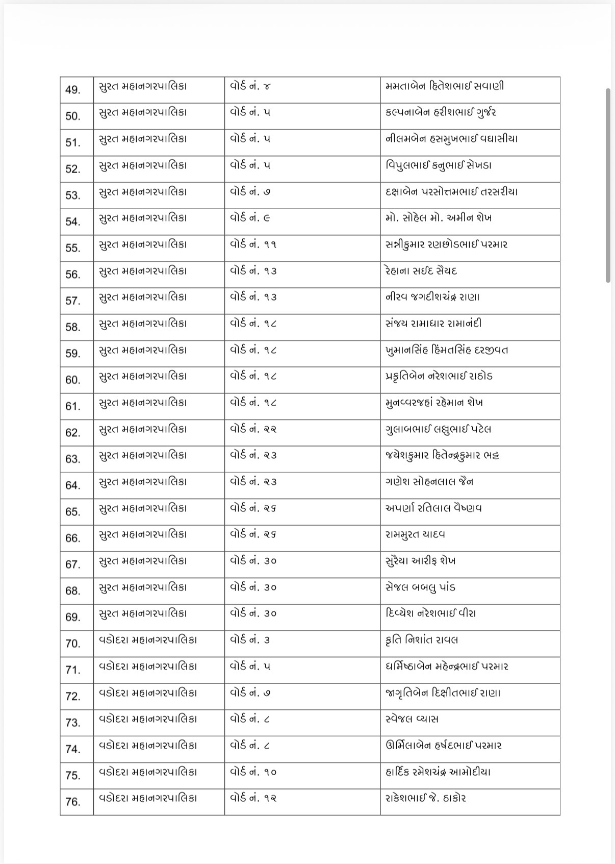 કોંગ્રેસ દ્વારા જાહેર કરાયેલ યાદી પ્રમાણે અમદાવાદ, સુરત, વડોદરા, રાજકોટ, જામનગર, ભાવનગર અને મોરબી એમ કુલ 7 મહાનગરપાલિકાઓમાં ઉમેદવારોને સ્થાન આપવામાં આવ્યું છે. આ યાદીમાં મુખ્યત્વે તે ઉમેદવારોનો સમાવેશ કરવામાં આવ્યો છે, જેમના નામ પર કોઈ આંતરિક વિવાદ કે મતભેદ નથી.