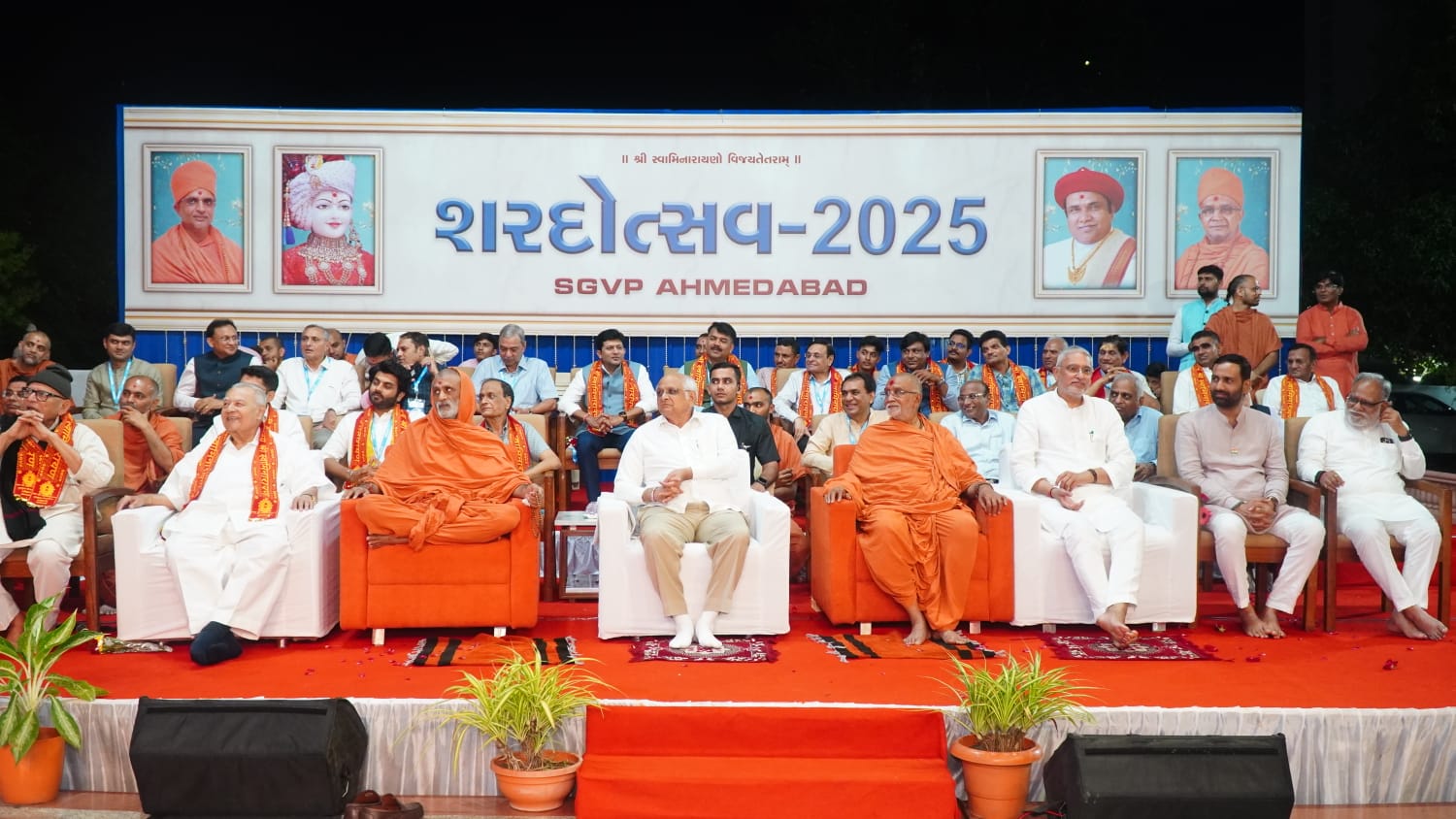 SGVP સંસ્થા દ્વારા શરદોત્સવ કાર્યક્રમમાં વિશેષ મહેમાન તરીકે જગદીશ વિશ્વકર્મા સાથે મુખ્યમંત્રી ભૂપેન્દ્ર પટેલ ઉપસ્થિત રહ્યા હતા. ત્યારે આ પ્રસંગે આ પ્રસંગે SGVPના સંત અને ઘણા ધારાસભ્યો ઉપસ્થિત રહ્યા હતા. જેમાં હર્ષદ પટેલ, કૌશિકભાઈ વેકરીયાનો સમાવેશ થાય છે.