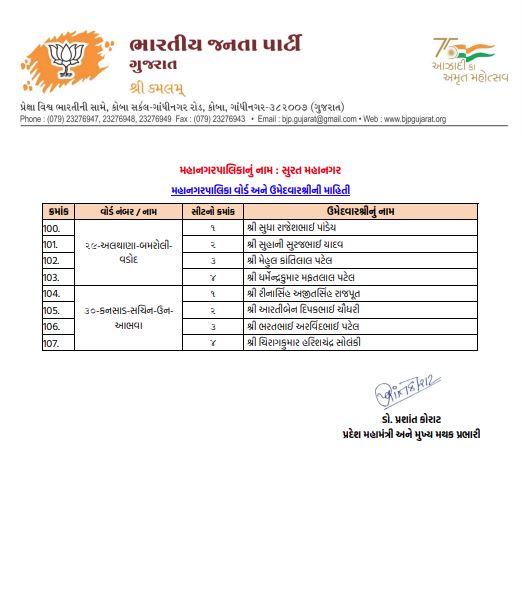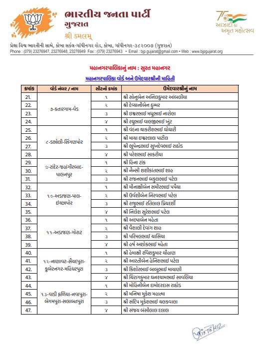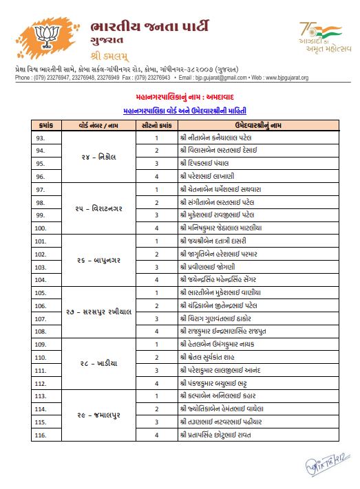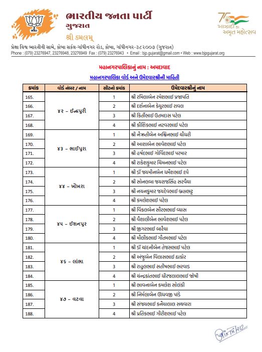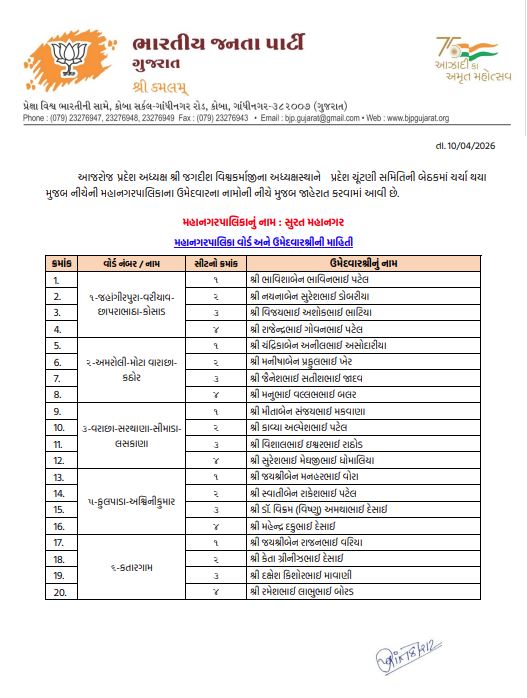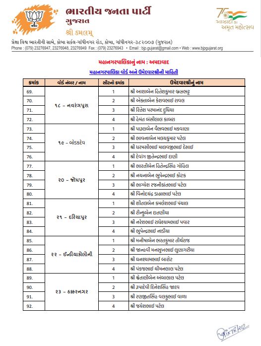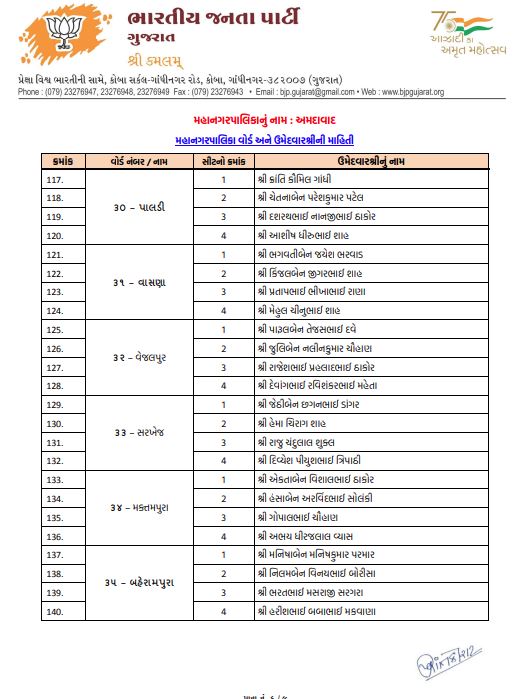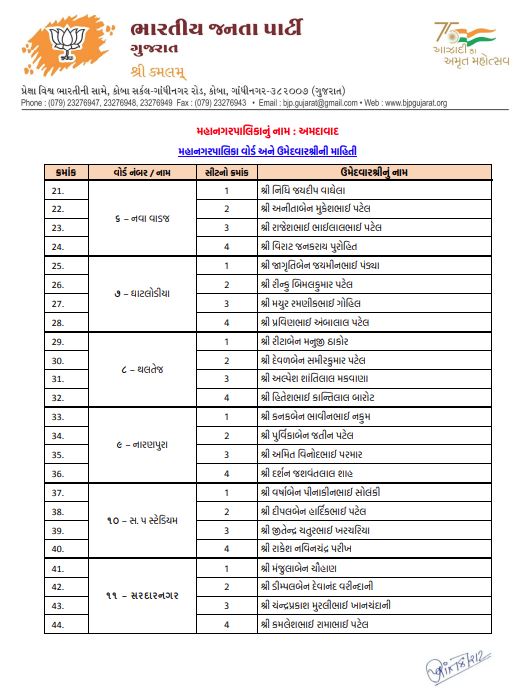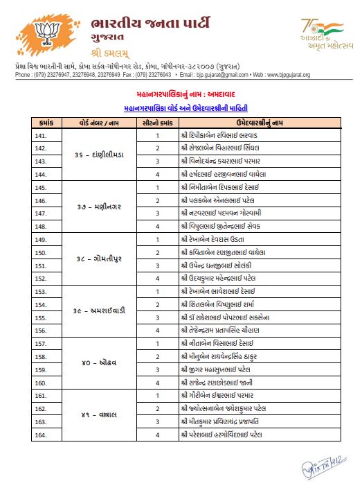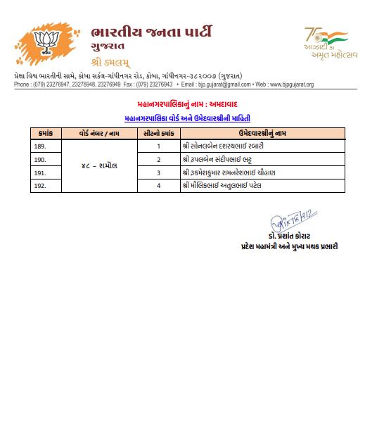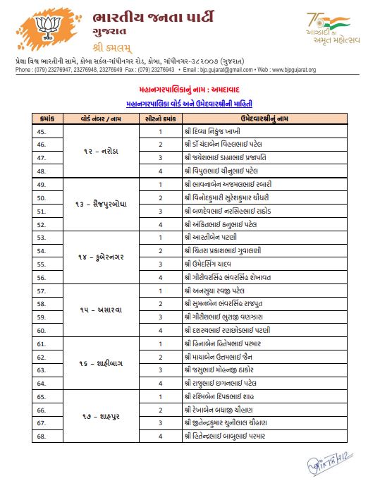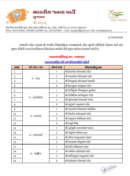 અમદાવાદમાં ભાજપનો મોટો દાવ: 48 વોર્ડમાં 192 ઉમેદવારો જાહેર
