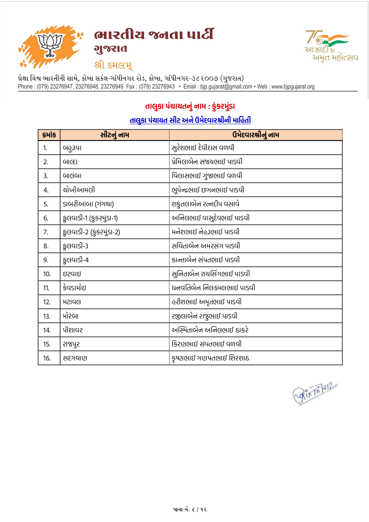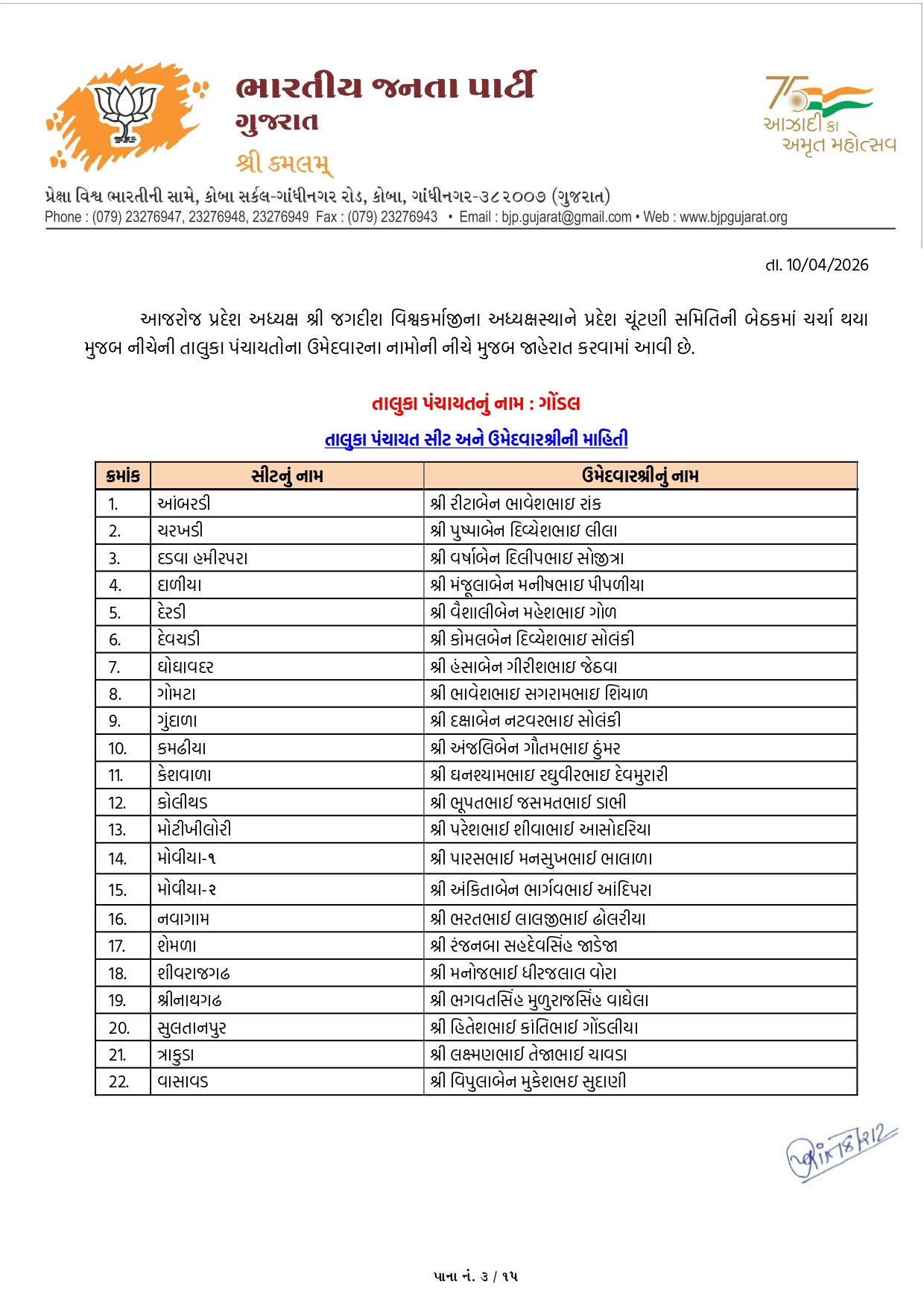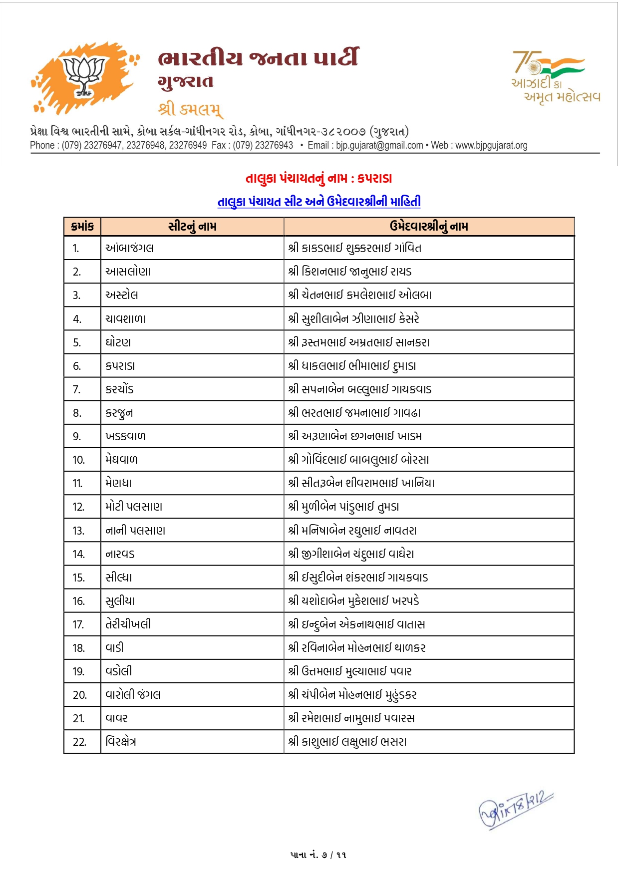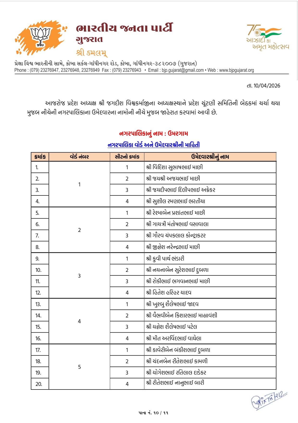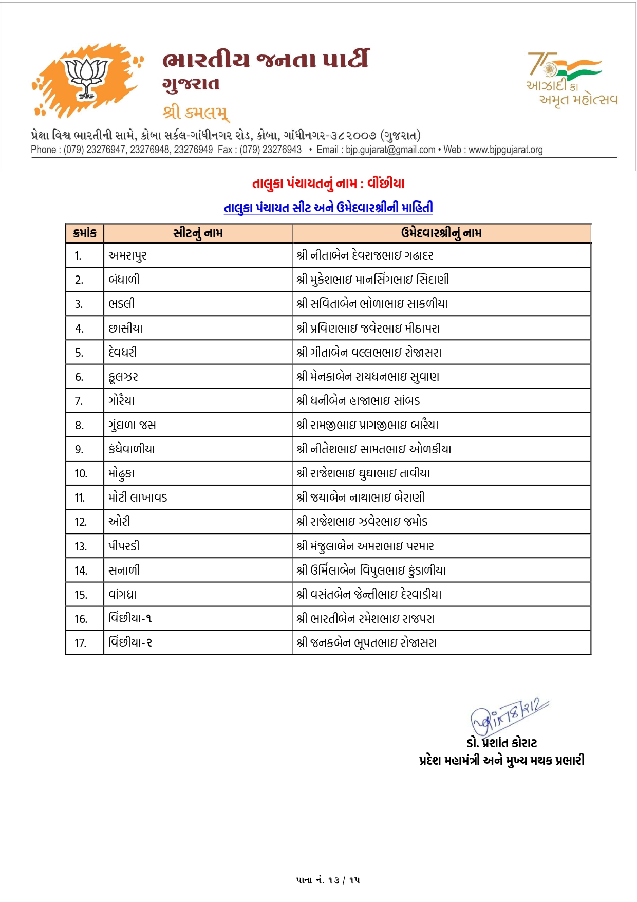 ગાંધીનગર, પાટણ અને નર્મદામાં ભાજપના ઉમેદવારોનું લિસ્ટ