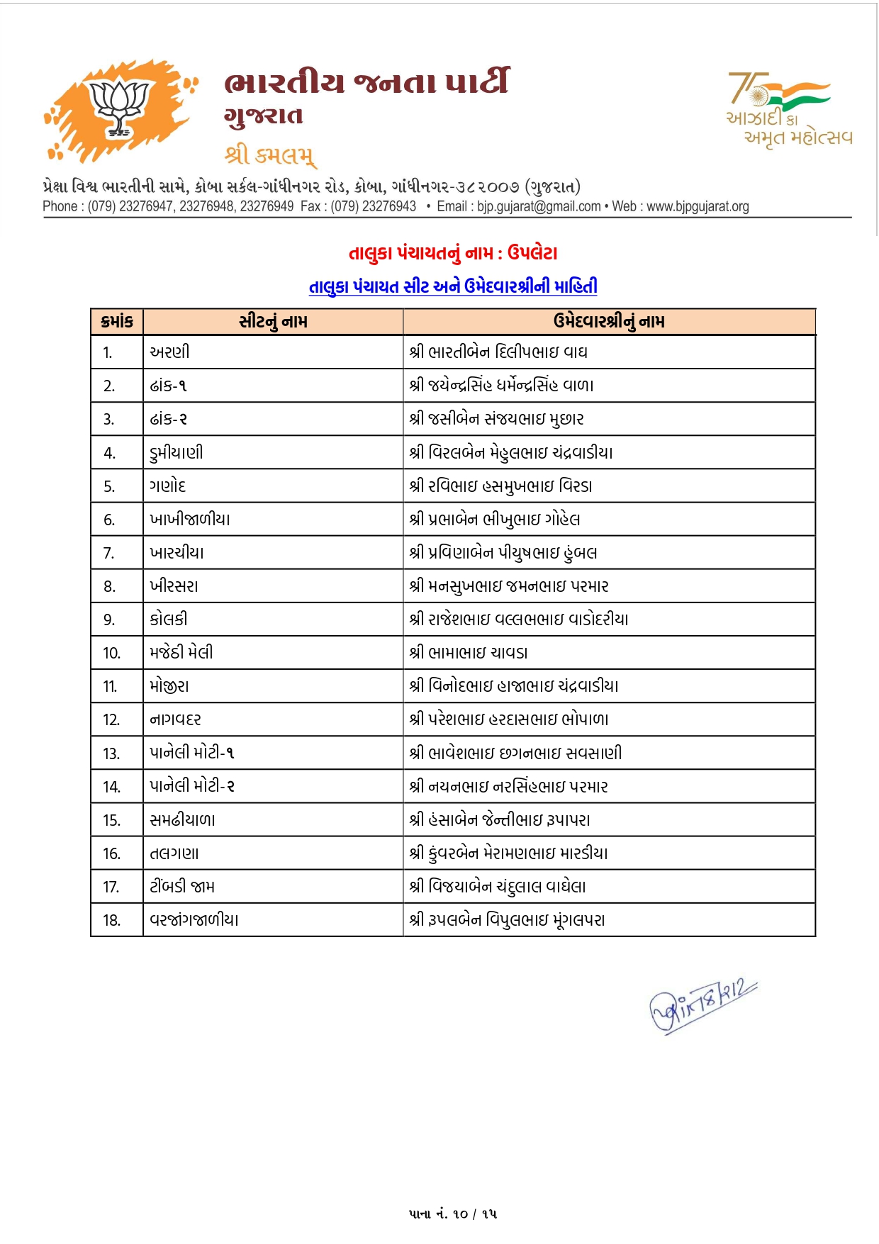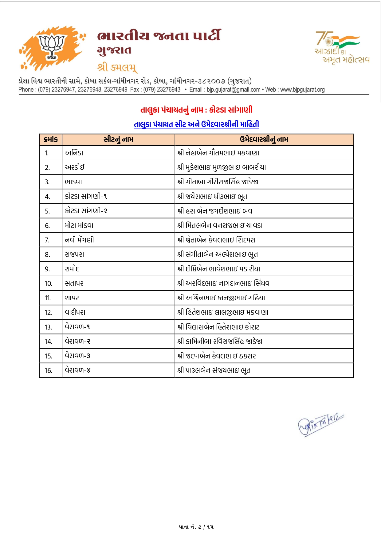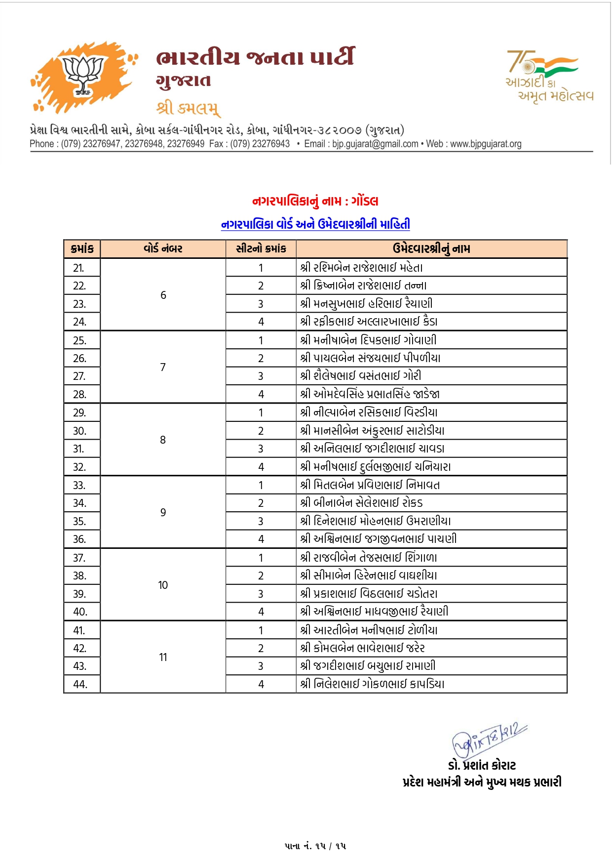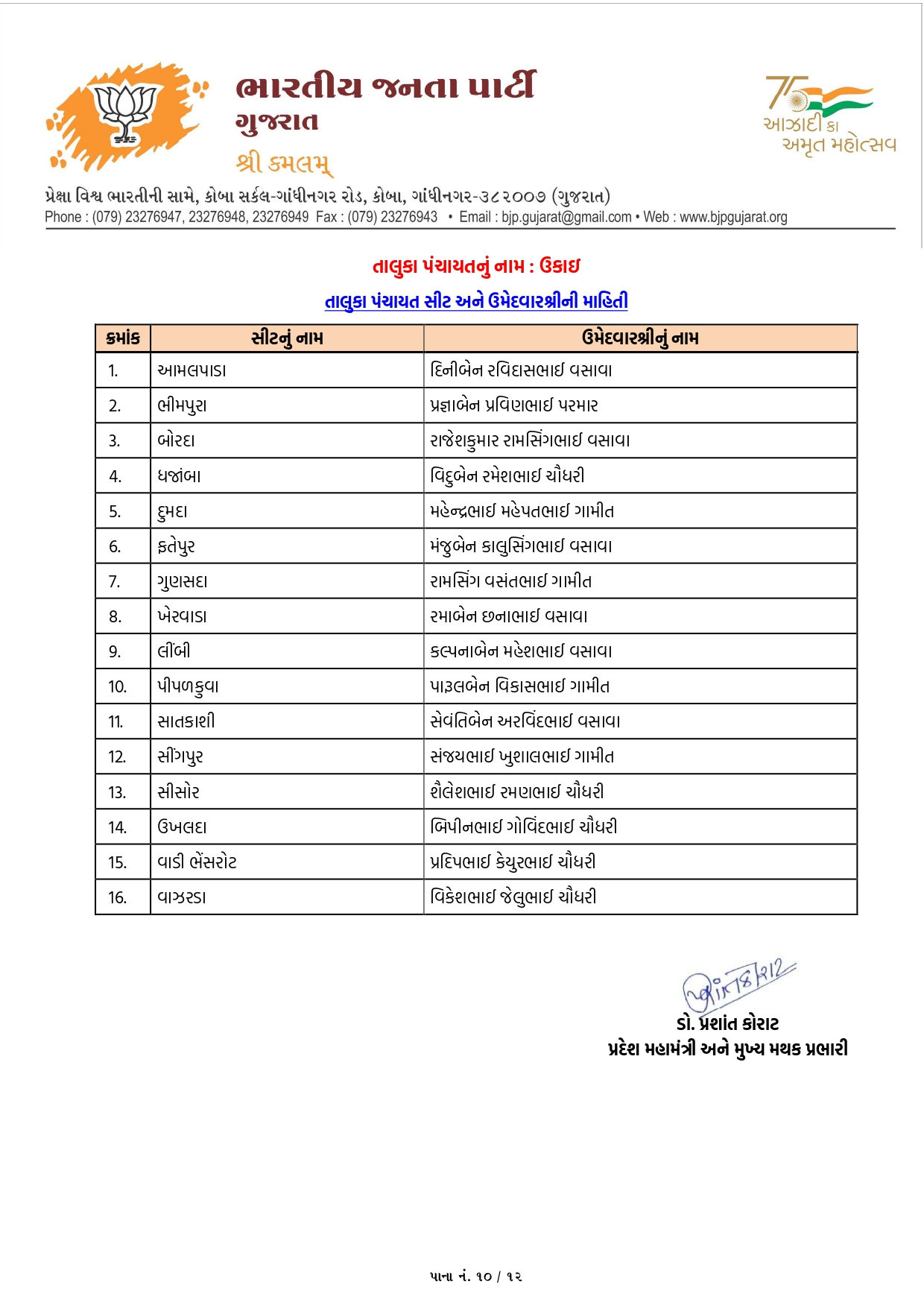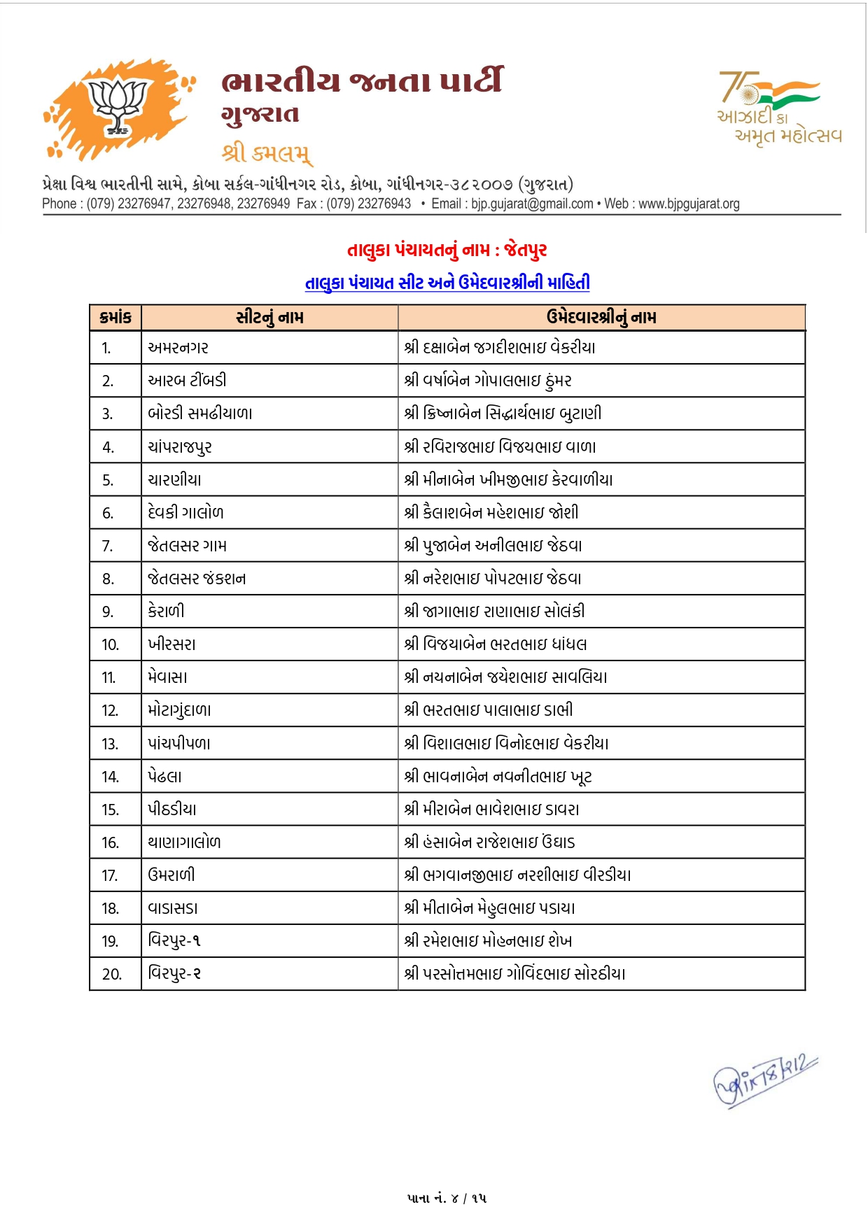 ગાંધીનગર, પાટણ અને નર્મદામાં ભાજપના ઉમેદવારોનું લિસ્ટ