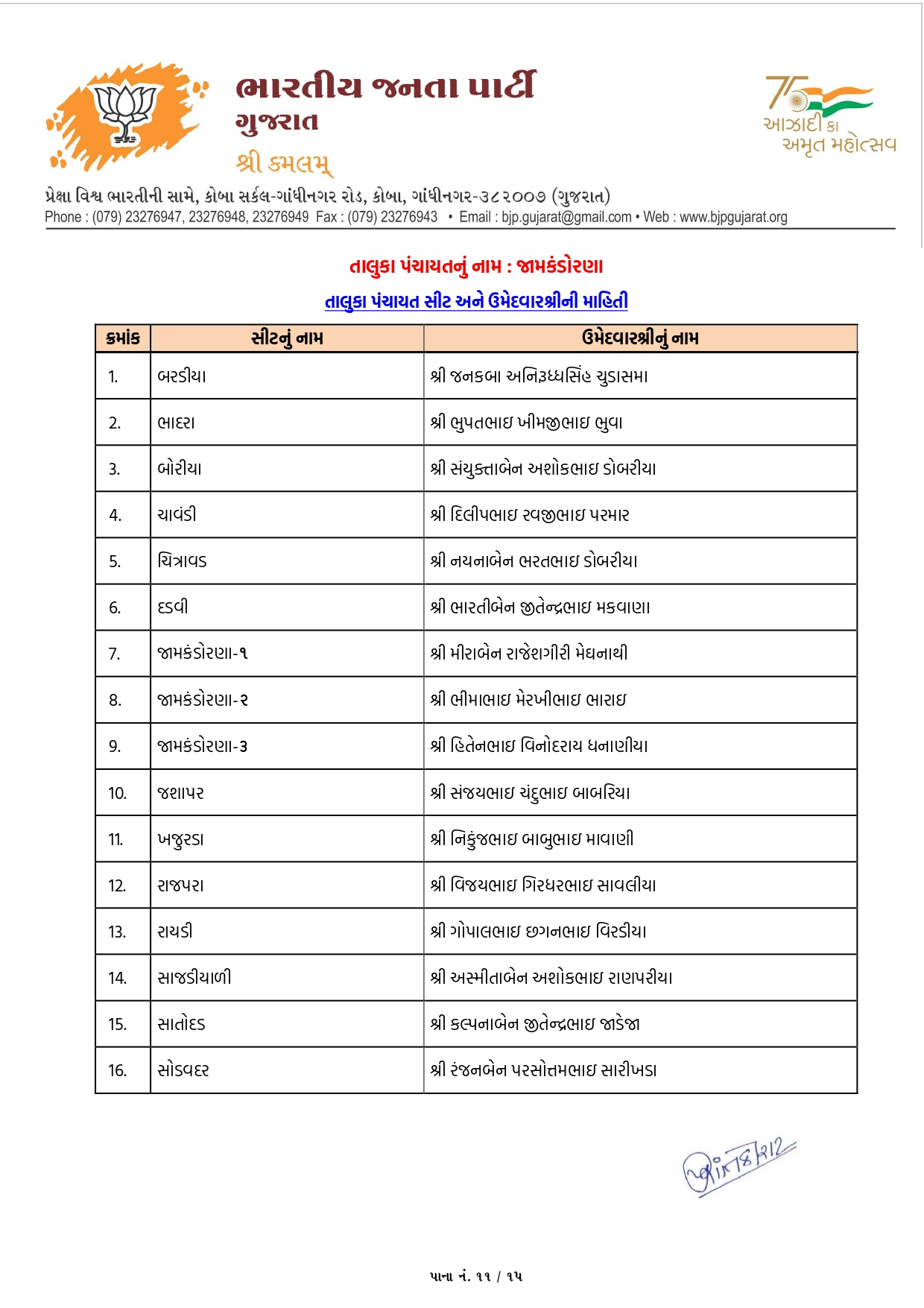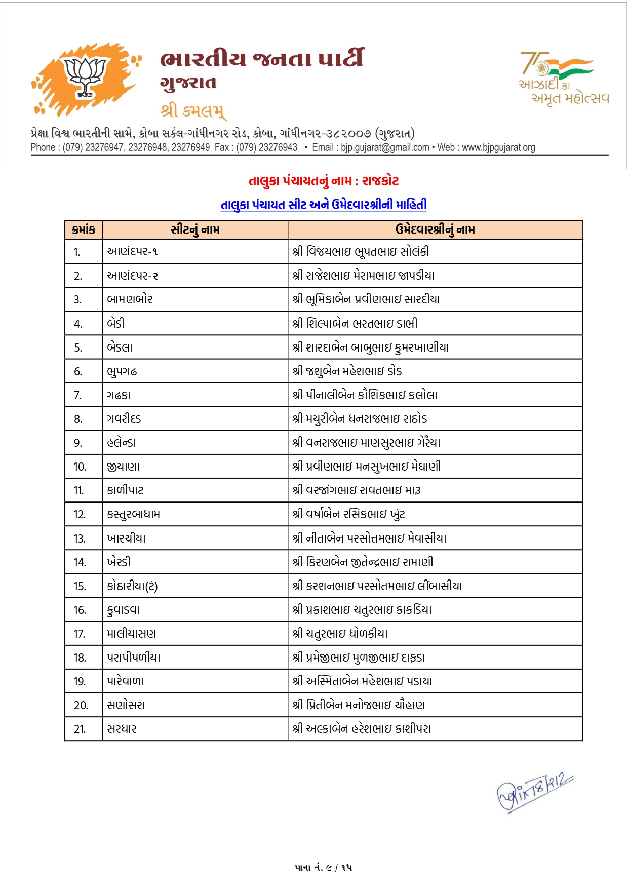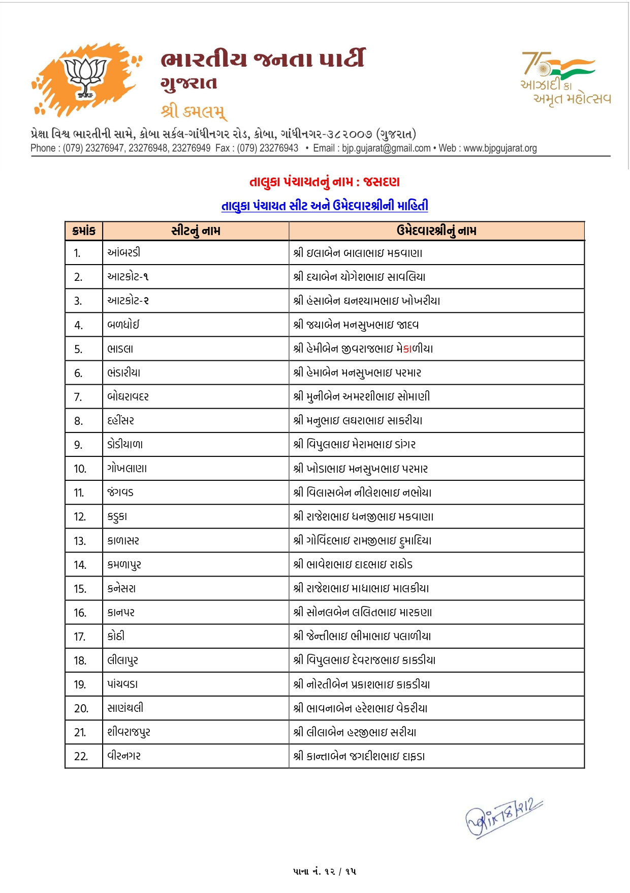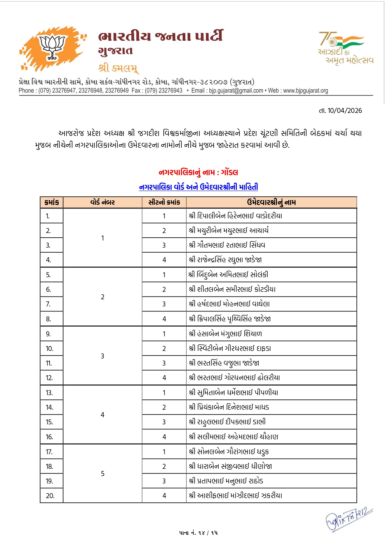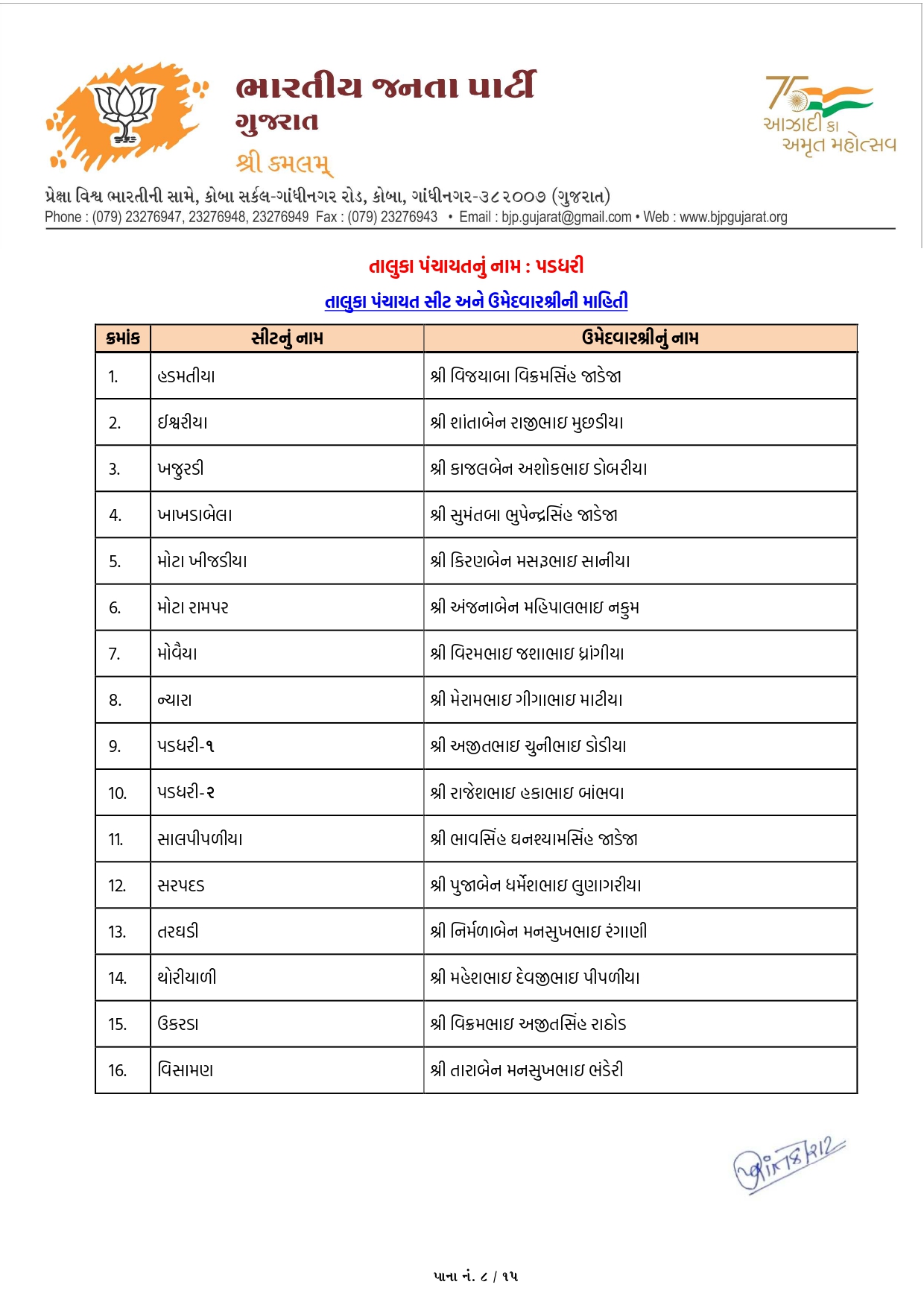ખેડા-નડિયાદમાં ભાજપના ઉમેદવારોનું લિસ્ટ