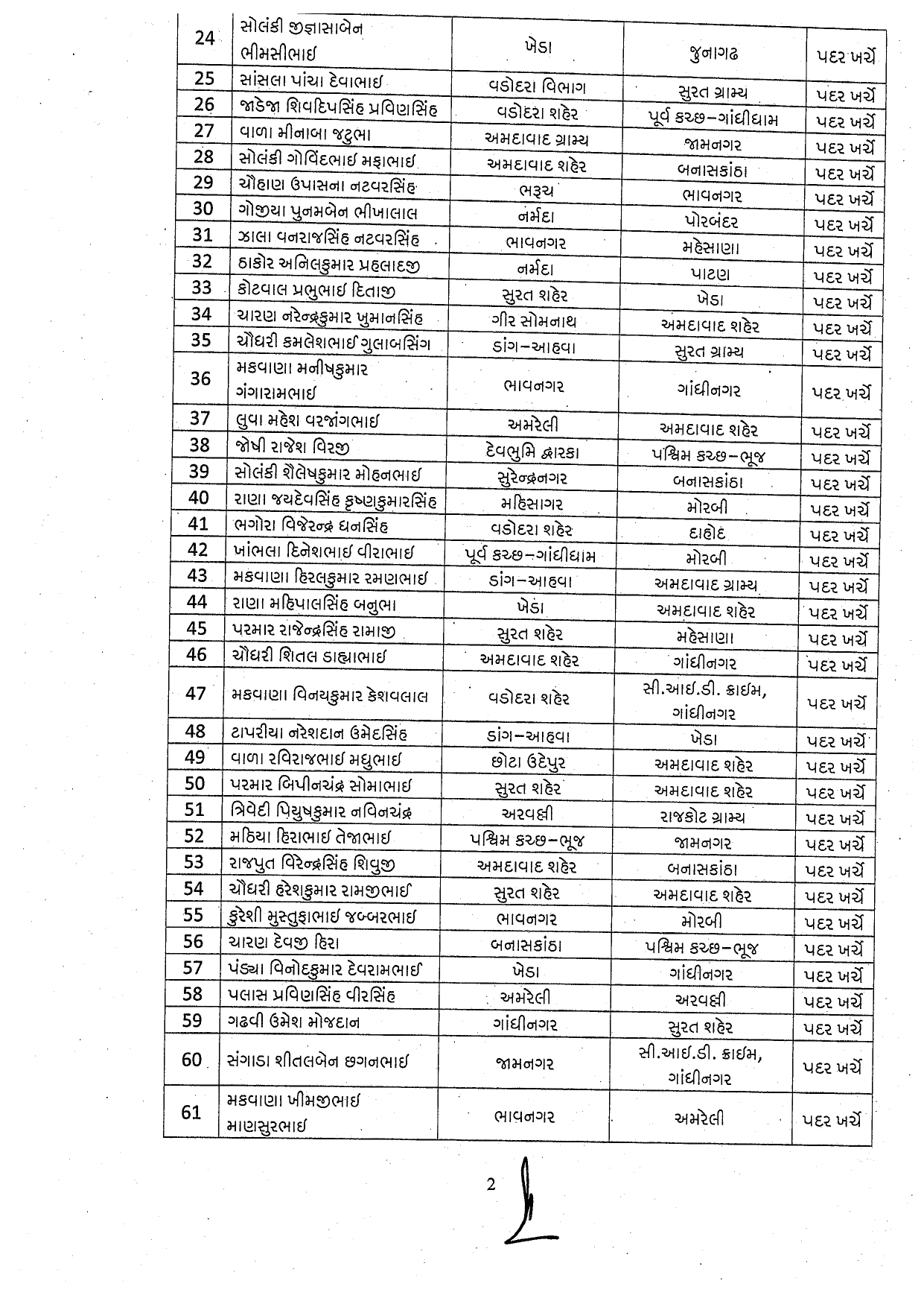 10 ચૌધરી અશોકભાઈ પુરાભાઈ ભાવનગરથી અમદાવાદ શહેર ખાતે બદલી કરાઈ