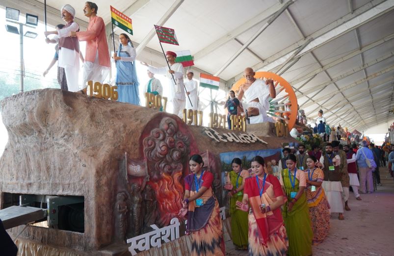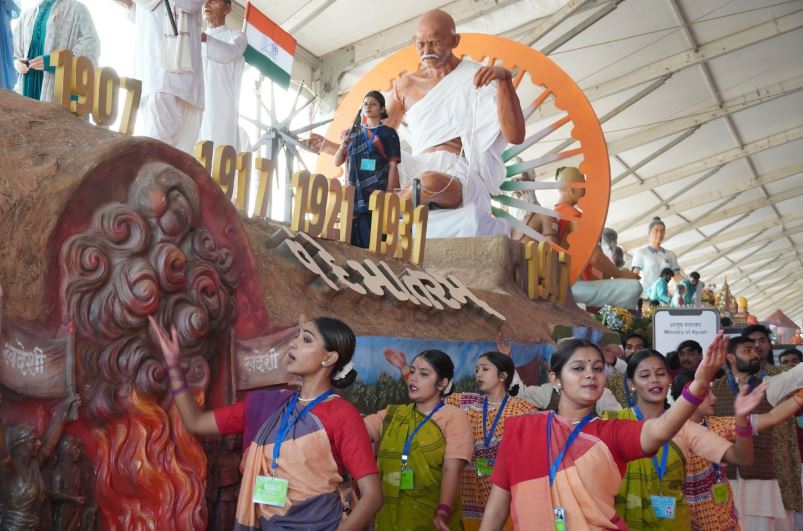 'ચરખા'ના માધ્યમથી સ્વદેશીના પ્રયોગ મારફતે સ્વતંત્રતાની હાકલ કરનારા મહાત્મા ગાંધીના શિલ્પને ટેબ્લોના અંતિમ ચરણમાં વિશાળ ધર્મચક્ર સાથે દર્શાવવામાં આવ્યું છે. સ્વાધીનતાની લડાઈ માટે ખપી જનારા વીર સપૂતોને યાદ કરીને રાષ્ટ્રીય ચેતના જગાવતા ‘રાષ્ટ્રીય શાયર’નું બિરુદ પામેલા ગુજરાતી રચનાકાર ઝવેરચંદ મેઘાણી રચિત 'કસુંબીનો રંગ'ના તાલે જુસ્સો વધારતા કલાકારો ટેબ્લોને જોમવંતો બનાવી રહ્યા છે. આ વર્ષે પ્રજાસત્તાક દિનની પરેડમાં 17 રાજ્યો અને કેન્દ્રસાશિત પ્રદેશો તથા કેન્દ્ર સરકારના વિવિધ વિભાગોની 13 ઝાંખીઓ મળીને કુલ 30 ટેબ્લોનું પ્રદર્શન થનારું છે. પ્રાપ્ત માહિતી અનુસાર, 77-મા પ્રજાસત્તાક પર્વની ઉજવણીમાં યુરોપિયન યુનિયનના બે વરિષ્ઠ નેતા : યુરોપિયન કમિશનના પ્રમુખ ઉર્સુલા વોન ડેર લિયેન તથા યુરોપિયન કાઉન્સિલના પ્રમુખ એન્ટોનિયો કોસ્ટા મુખ્ય અતિથિ તરીકે ઉપસ્થિત રહેશે.