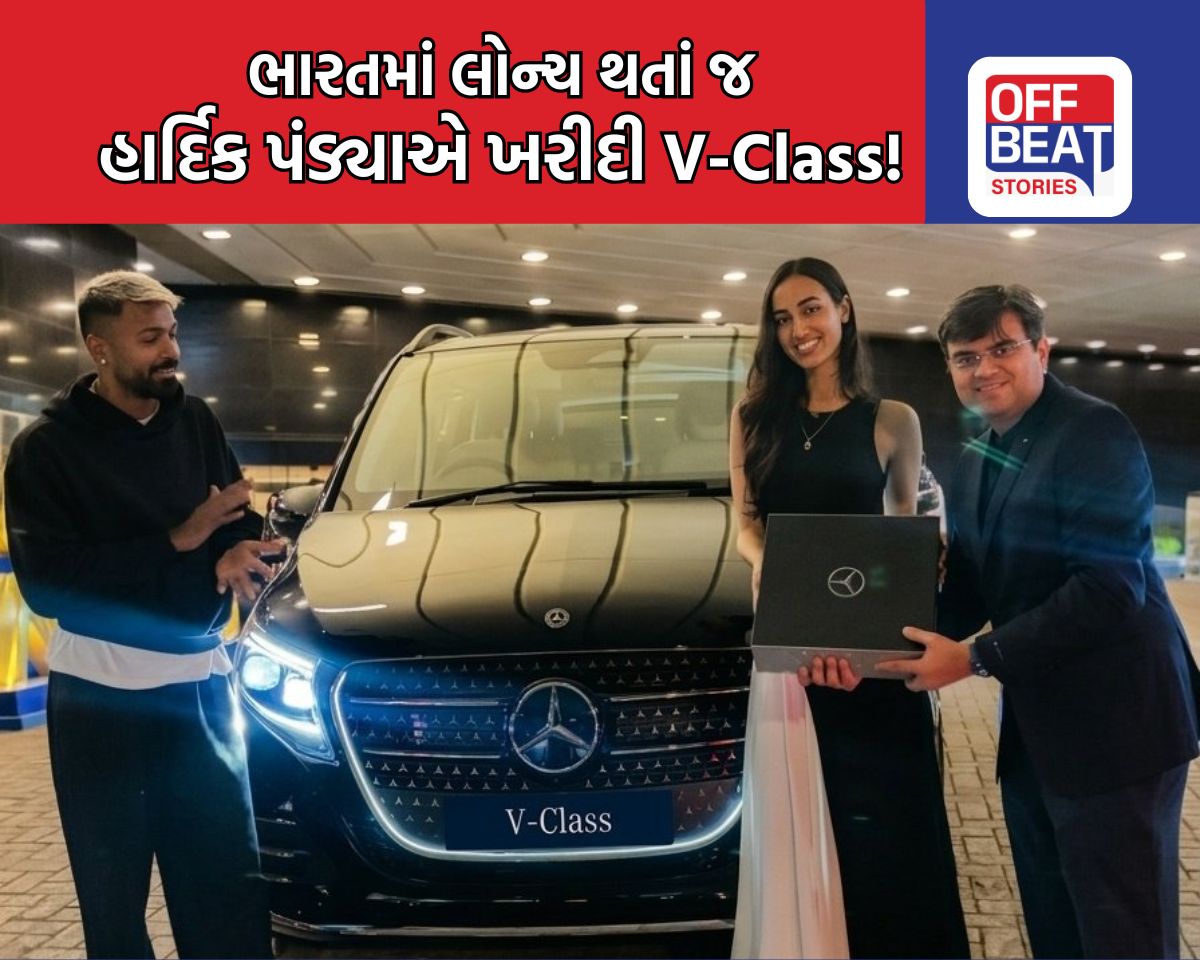 Mercedes-Benz V-Class : ભારતીય ક્રિકેટ ટીમના સ્ટાર ઓલરાઉન્ડર અને મુંબઈ ઈન્ડિયન્સના કેપ્ટન હાર્દિક પંડ્યા પોતાની લક્ઝરી લાઈફસ્ટાઈલ માટે જાણીતો છે. હાલમાં જ તેમણે પોતાના કાર કલેક્શનમાં એક શાનદાર લક્ઝરી કારનો ઉમેરો કર્યો છે. હાર્દિક પંડ્યા ભારતમાં નવી લોન્ચ થયેલી મર્સિડીઝ-બેન્ઝ V-ક્લાસ (Mercedes-Benz V-Class) ના પ્રથમ ખરીદદાર બન્યા છે. રિપોર્ટ્સ મુજબ, હાર્દિક પંડ્યાએ આ આલીશાન કાર તેની ગર્લફ્રેન્ડ મહિકા શર્માને ભેટમાં આપી છે. સોશિયલ મીડિયા પર આ લક્ઝરી કારની ડિલિવરી લેતા ફોટા પણ વાયરલ થઈ રહ્યો છે.