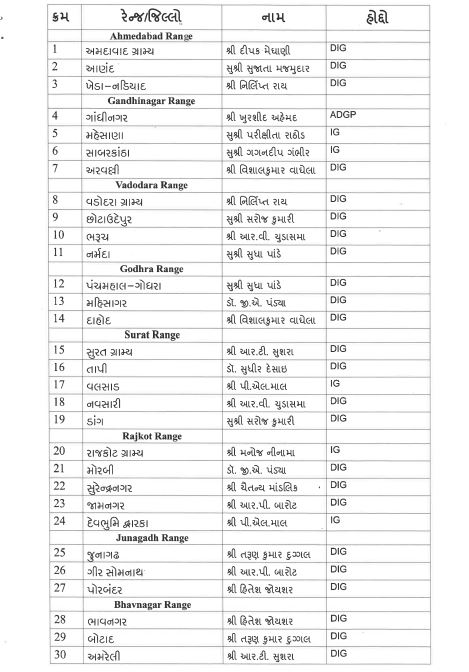 જુઓ ક્યાં અધિકારી ક્યાં જિલ્લામાં જશે?