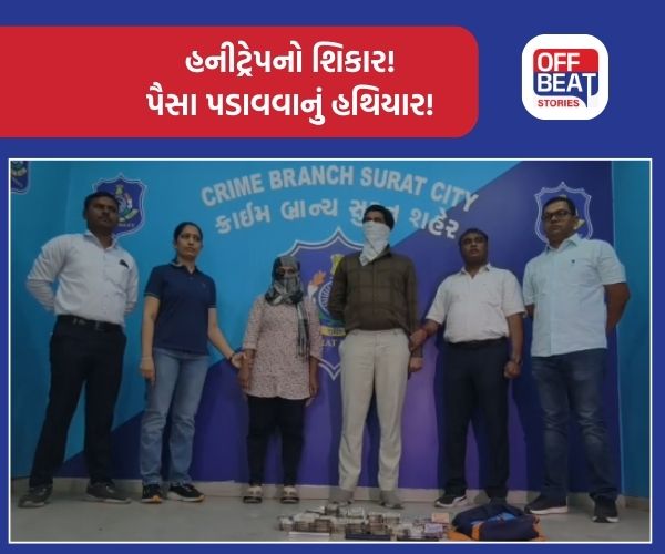 Surat Honeytrap case : સુરત શહેરમાં હનીટ્રેપનો ગંભીર મામલો સામે આવ્યો છે, જ્યાં એક યુવકને ન્યૂડ વીડિયો દ્વારા બ્લેકમેઇલ કરીને રૂ. 20 લાખની ખંડણી વસૂલવામાં આવી હતી. સુરત ક્રાઈમ બ્રાન્ચે ઝડપેલી આ જોડીમાં અભીષેક સંજય શેઠીયા અને હેતલબેન વિઠ્ઠલભાઈ બારૈયા નામના આરોપીઓનો સમાવેશ થાય છે. પોલીસે બંનેને પકડી પાડીને રૂ. 20 લાખ રોકડ, ત્રણ મોબાઈલ ફોન સહિત કુલ રૂ. 20,85,000 નો મુદ્દામાલ જપ્ત કર્યો છે.
