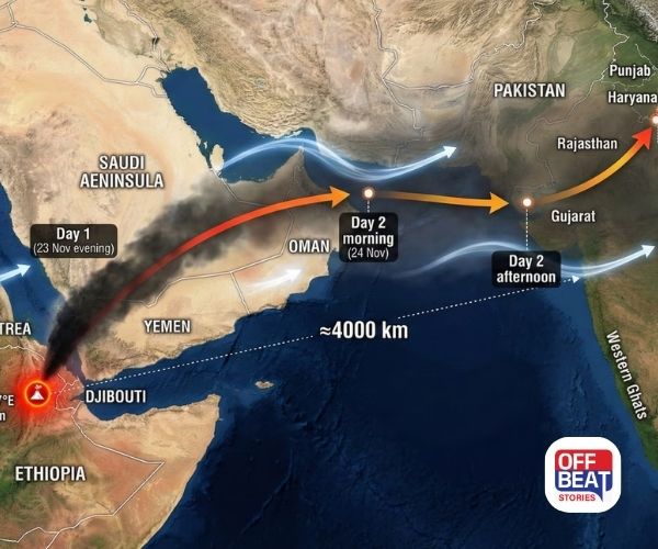 કલ્પના કરો કે હજારો વર્ષોથી ઉજ્જડ આફ્રિકન રણમાં સુષુપ્ત રહેલો એક જ્વાળામુખી અચાનક જાગી જાય છે. આકાશમાં કાળો ધુમાડો છવાઈ જાય છે, રાખનો જાડો પડ આકાશને ઢાંકી દે છે, અને રાખ, પવન પર સવાર થઈને, લાલ સમુદ્ર પાર કરે છે, અરબી દ્વીપકલ્પ પાર કરે છે, પછી અરબી સમુદ્ર પાર કરીને ઉત્તરપશ્ચિમ ભારતમાં પહોંચે છે. આ કોઈ વિજ્ઞાન સાહિત્ય ફિલ્મનું દ્રશ્ય નથી, પરંતુ એક વાસ્તવિક ઘટના છે. 23 નવેમ્બર, 2025 ના રોજ 10,000 થી 12,000 વર્ષોમાં પહેલી વાર ઇથોપિયાનો હેઇલ ગુબ્બી જ્વાળામુખી ફાટ્યો હતો અને તેની રાખ દિલ્હીની હવામાં ઓગળી ગઈ હતી. અંતર? લગભગ 4000 કિલોમીટર! આ રાખ પવનના જોરદાર પ્રવાહ પર સવાર થઈને ભારત પહોંચી હતી.