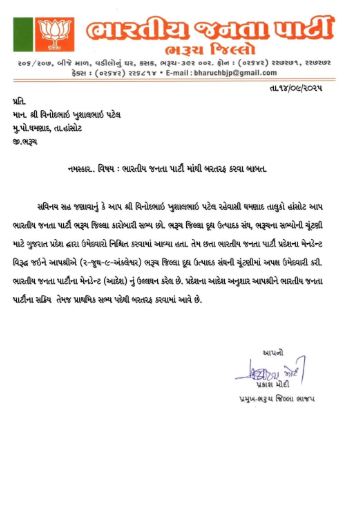 અરૂણસિંહ રણાની પેનલના 3 ઉમેદવારો ને ભાજપે મેન્ડેટ આપ્યા