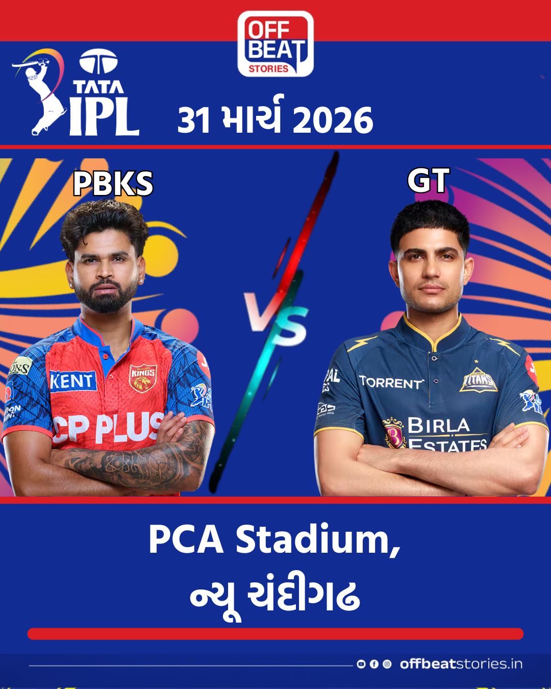 PBKS vs GT : IPL 2026 ની ચોથી મેચમાં આજે પંજાબ કિંગ્સ (PBKS) અને ગુજરાત ટાઇટન્સ (GT) સામસામે ટકરાશે. આ મેચ પંજાબના હોમ ગ્રાઉન્ડ ન્યૂ ચંદીગઢના મહારાજા યાદવેન્દ્ર સિંહ સ્ટેડિયમમાં સાંજે 7:30 વાગ્યે શરૂ થશે. ગુજરાત ટાઇટન્સ તેના પહેલી સિઝન એટલે કે, 2022 માં ચેમ્પિયન બની ગયું હતું, આ GT ની પાંચમી સિઝન છે, જ્યારે પંજાબ કિંગ્સ હજુ પણ તેના પ્રથમ ટાઇટલની શોધમાં છે. ગયા વર્ષે પંજાબની ટીમ ફાઇનલમાં પહોંચી હતી પણ ટાઇટલ જીતવામાં નિષ્ફળ રહી.