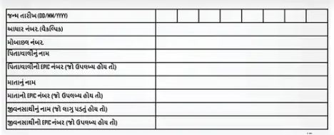 મતદારોને ફોટો સહિત વિવિધ પ્રકારની માહિતી આપવાની રહેશે. જેમ કે જન્મ તારીખ, સરનામું, મોબાઈલ નંબર, જાતિ, ધર્મ, શિક્ષણ, આધાર નંબર વગેરે. ફોર્મ BLO દ્વારા આંશિક રીતે ભરેલું હશે, અને બાકીની વિગતો મતદારે જાતે પૂરણી પડશે.