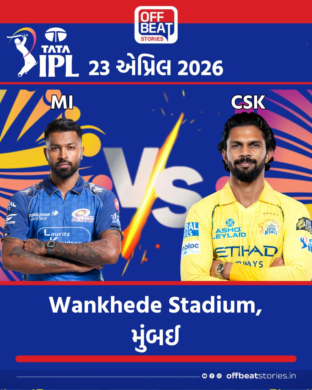 MI vs CSK : IPL 2026 માં આજે ક્રિકેટ પ્રેમીઓ માટે સૌથી મોટો દિવસ છે. ટૂર્નામેન્ટની બે સૌથી સફળ અને લોકપ્રિય ટીમો, મુંબઈ ઈન્ડિયન્સ (MI) અને ચેન્નઈ સુપર કિંગ્સ (CSK), આજે મુંબઈના ઐતિહાસિક વાનખેડે સ્ટેડિયમમાં આમને-સામને ટકરાશે. આ મેચને ક્રિકેટનો 'El Clásico' માનવામાં આવે છે કારણ કે, જ્યારે પણ આ બે ટીમો ટકરાય છે ત્યારે રોમાંચ તેની ચરમસીમાએ હોય છે. મેચ સાંજે 7:30 વાગ્યે શરૂ થશે, જ્યારે ટોસ પ્રક્રિયા સાંજે 7:00 વાગ્યે હાથ ધરવામાં આવશે.