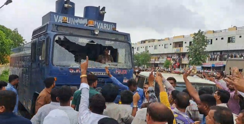 પશુપાલકોએ પોલીસના વોટર બ્રાઉઝર પર પથ્થરો ફેંક્યા હતા. પથ્થરોથી વોટર બ્રાઉઝરના મેન ગ્લાસને તોડી નાંખ્યો હતો. આ ઘટનામાં અનેક લોકો ઈજાગ્રસ્ત થયા હતા. પોલીસે ટોળાને વિખેરવા પ્રથમ લાઠીચાર્જ કર્યો હતો અને બાદમાં ટીયરગેસના સંખ્યાબંધ શેલ છોડ્યા હતા, પોલીસે ઘટના સ્થળેથી 50 કરતાં વધુ લોકોની અટકાયત કરવામાં આવી છે.