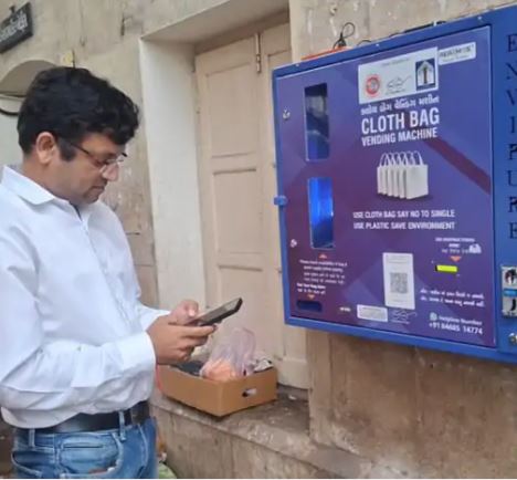 વડોદરા મહાનગરપાલિકા દ્વારા શહેરને સિંગલ યુઝ પ્લાસ્ટિક ફ્રી સિટી બનાવવા માટે નવું પગલું ભરાયું છે. ખંડેરાવ માર્કેટ ખાતે પ્રાયોગિક ધોરણે ક્લોથ બેગ વેન્ડિંગ મશીન મૂકાયું છે.