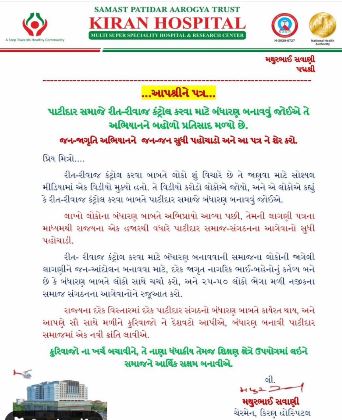 પત્ર મારફતે તેમણે જન જાગૃતિ અભિયાનને વધુ વેગ આપ્યો