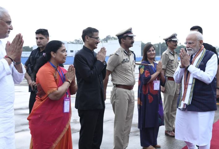 વડાપ્રધાન નરેન્દ્ર મોદી ગુજરાતનો એક દિવસીય પ્રવાસ પૂર્ણ કરી આજે દિલ્હી જવા રવાના થયા હતા. અમદાવાદ એરપોર્ટ ખાતેથી વડાપ્રધાન નરેન્દ્ર મોદીને રાજ્યપાલ આચાર્ય દેવવ્રત અને મુખ્યમંત્રી ભૂપેન્દ્ર પટેલે ભાવસભર વિદાય આપી હતી.