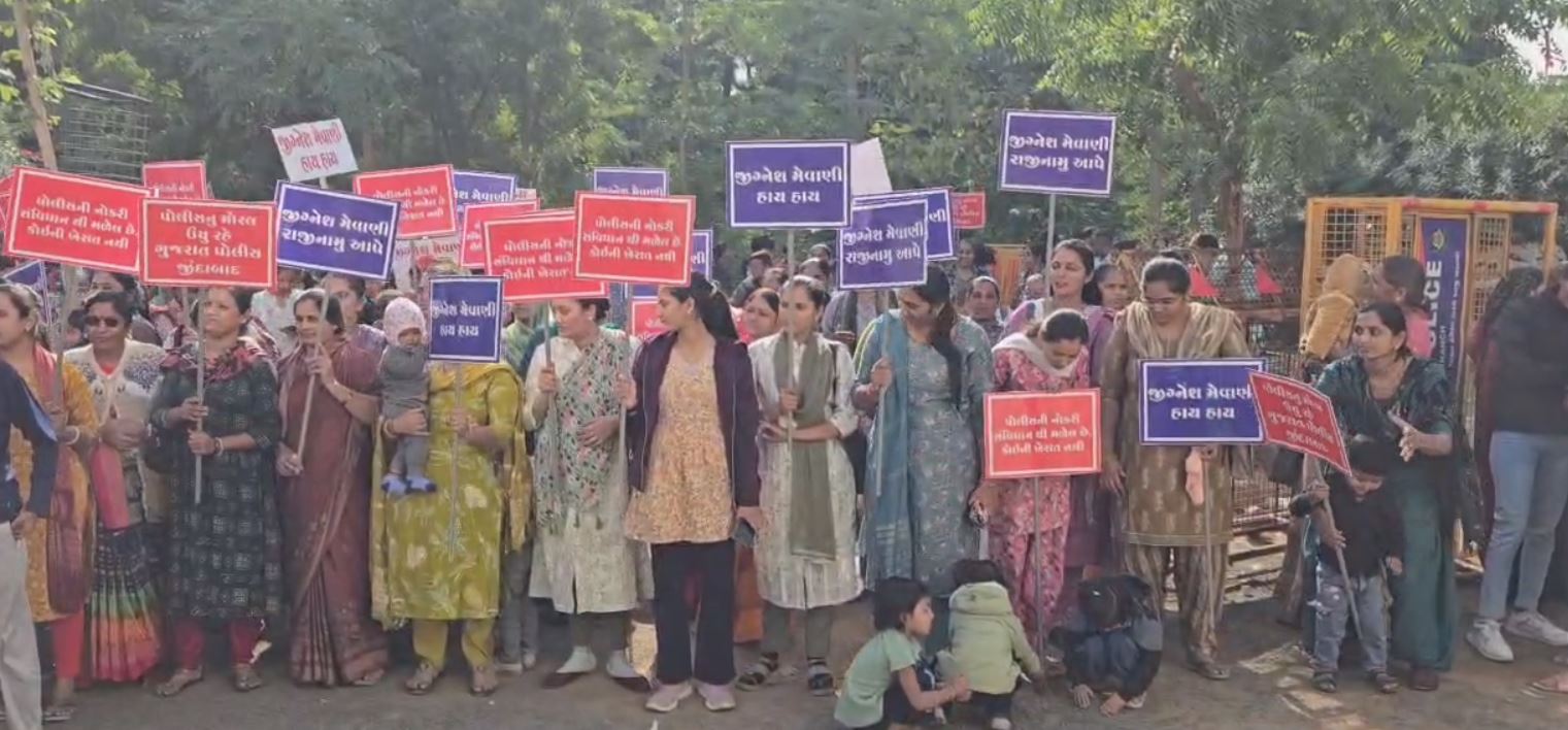 ભુજમાં પોલીસ પરિવારો એકત્ર થઈ રેલી યોજી હતી, જેમાં તેમણે “જીગ્નેશ મેવાણી હાય હાય” અને “જિગ્નેશ મેવાણી રાજીનામું આપે” જેવા બેનરો સાથે પોતાનો વિરોધ નોંધાવ્યો હતો. રેલી બાદ પોલીસ પરિવારે કલેકટરને આવેદન પત્ર આપી કડક કાર્યવાહી કરવાની માંગણી કરી છે. મેવાણીના નિવેદનને લઈને પોલીસ પરિવારોમાં હજુ પણ ભારે રોષ છે. રાજ્યના વિવિધ વિસ્તારોમાં પોલીસ પરિવાર દ્વારા વિરોધનો સૂર જોવા મળી રહ્યો છે.