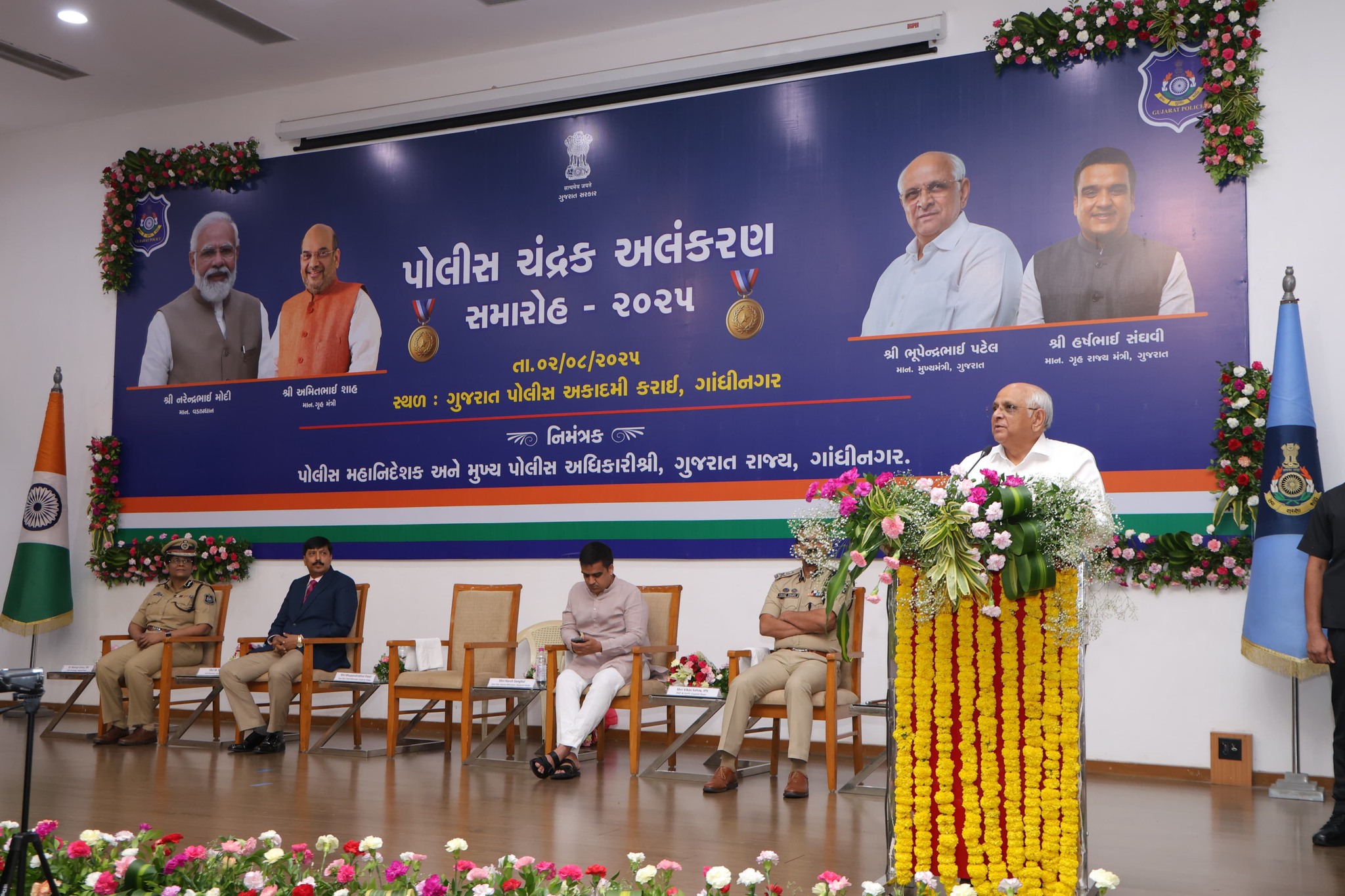 મુખ્યમંત્રી ભૂપેન્દ્ર પટેલે પોલીસ દળમાં કર્તવ્ય નિષ્ઠાથી ઉત્કૃષ્ઠ ફરજો બજાવવા માટે રાષ્ટ્રપતિશ્રીના ચંદ્રક મેળવનારા ગુજરાત પોલીસના 118 અધિકારીઓ-કર્મચારીઓને આ ચંદ્રક એનાયત કર્યા હતા. ગુજરાત પોલીસ અકાદમી કરાઈ ખાતે યોજાયેલા ચંદ્રક અલંકરણના આ ગૌરવશાળી સમારોહમાં ગૃહ રાજ્યમંત્રી હર્ષ સંઘવી પણ ઉપસ્થિત રહ્યા હતા. મુખ્યમંત્રી ભૂપેન્દ્ર પટેલે મેડલ્સ મેળવનાર સૌ પોલીસ અધિકારી-કર્મચારીઓને અભિનંદન પાઠવતા સ્પષ્ટ પણે જણાવ્યું કે, સમગ્ર પોલીસ દળની ફરજ નિષ્ઠા અને કર્તવ્ય ભાવનાથી શાંતિ, સલામતી અને સુરક્ષા સાથે ગુજરાત દેશના વિકાસનું રોલ મોડલ બની શક્યું છે.