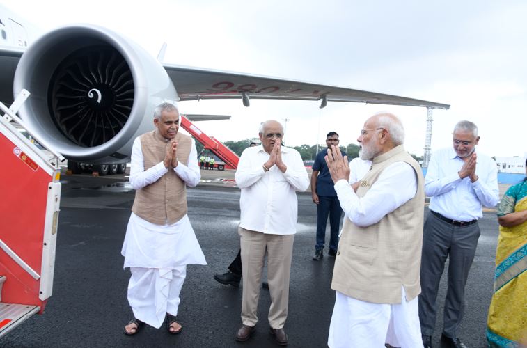 વડાપ્રધાન નરેન્દ્ર મોદી ગુજરાતનો બે દિવસીય પ્રવાસ પૂર્ણ કરી આજે દિલ્હી જવા રવાના થયા હતા. અમદાવાદ એરપોર્ટ ખાતેથી વડાપ્રધાન નરેન્દ્રભાઈ મોદીને રાજ્યપાલ આચાર્ય દેવવ્રત અને મુખ્યમંત્રી ભૂપેન્દ્ર પટેલે ભાવસભર વિદાય આપી હતી.