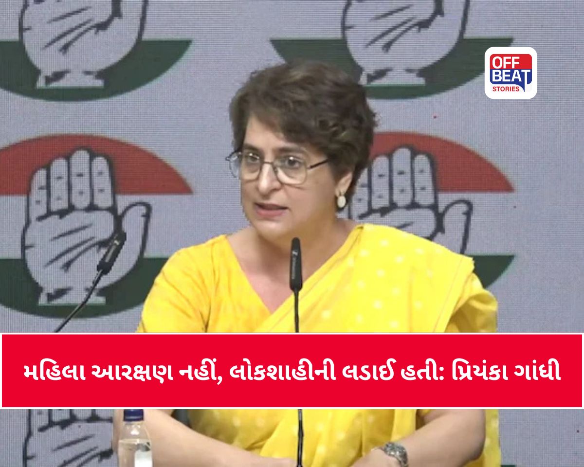 લોકસભામાં મહિલાઓના આરક્ષણ બિલને લઈને ભારે રાજકીય હલચલ વચ્ચે કોંગ્રેસ નેતા પ્રિયંકા ગાંધી વડ્રાએ કેન્દ્ર સરકાર પર સીધી ટકોર કરી છે. બિલ નિષ્ફળ ગયા બાદ યોજાયેલી પ્રેસ કોન્ફરન્સમાં તેમણે કહ્યું કે આ સમગ્ર મુદ્દો મહિલાઓના અધિકાર વિશે નહોતો. આ મુદ્દો લોકશાહી અને દેશના બંધારણને લઈને ગંભીર ચિંતાઓ ઉભી કરે છે. આ નિવેદનથી દેશની રાજનીતિમાં નવી ચર્ચા શરૂ થઈ ગઈ છે.