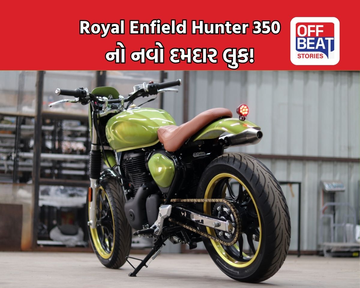 Royal Enfield Hunter 350 : Royal Enfield Hunter 350 ભારતીય બજારમાં ખૂબ જ લોકપ્રિય છે, પરંતુ હાલમાં આ બાઇકનું એક એવું મોડલ સામે આવ્યું છે, જેને બધાનું ધ્યાન પોતાની બાજુએ ખેંચ્યું છે. ગુજરાત સ્થિત 'જેડી કસ્ટમ્સ' (JD Customs) દ્વારા તૈયાર કરવામાં આવેલી આ બાઇકનું નામ 'કોન્યાક' (Konyak) રાખવામાં આવ્યું છે. આ માત્ર એક મોડિફિકેશન નથી, પરંતુ ઉત્તર-પૂર્વ ભારતની સંસ્કૃતિ અને આધુનિક એન્જિનિયરિંગનું અદભૂત કોમ્બિનેશન છે. જાણો આ દમદાર સ્ક્રેમ્બલર બાઇકની સંપૂર્ણ માહિતી.