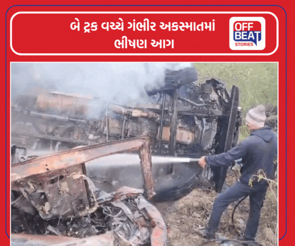 Panchmahal Two Truck Accident : પંચમહાલ જિલ્લામાં ગોધરા નજીક ડોક્ટરના મુવાડા પાસે બે ટ્રક વચ્ચે એક ભયાનક માર્ગ અકસ્માત સર્જાયો હતો. આ અકસ્માતમાં સામસામે આવી રહેલી બે ટ્રકો એકબીજા સાથે ધડાકાભેર અથડાઈ હતી, જેના કારણે બંને ટ્રકોમાં અચાનક ભીષણ આગ ભભૂકી ઊઠી હતી. અકસ્માત એટલો ગંભીર હતો કે એક ટ્રકના ચાલકનું આગમાં બળી જતા કરુણ મોત નીપજ્યું હતું.