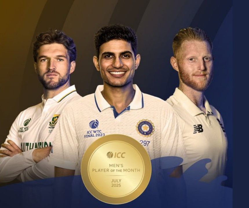 શુભમન ગિલને ઈંગ્લેન્ડના કેપ્ટન બેન સ્ટોક્સ અને દક્ષિણ આફ્રિકાના ઓલરાઉન્ડર વિઆન મુલ્ડર તરફથી સખત સ્પર્ધાનો સામનો કરીને પ્લેયર ઓફ ધ મંથનો એવોર્ડ જીત્યો. 25 વર્ષીય ગિલે જુલાઈમાં મજબૂત રમત બતાવી અને ત્રણ ટેસ્ટ મેચમાં 94.50 ની પ્રભાવશાળી સરેરાશથી 756 રન બનાવ્યા, જેમાં એક બેવડી સદી પણ સામેલ હતી.