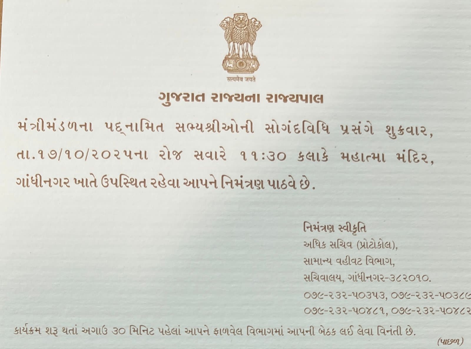 શપથવિધિ માટે આમંત્રણ પત્રિકા પણ તૈયાર