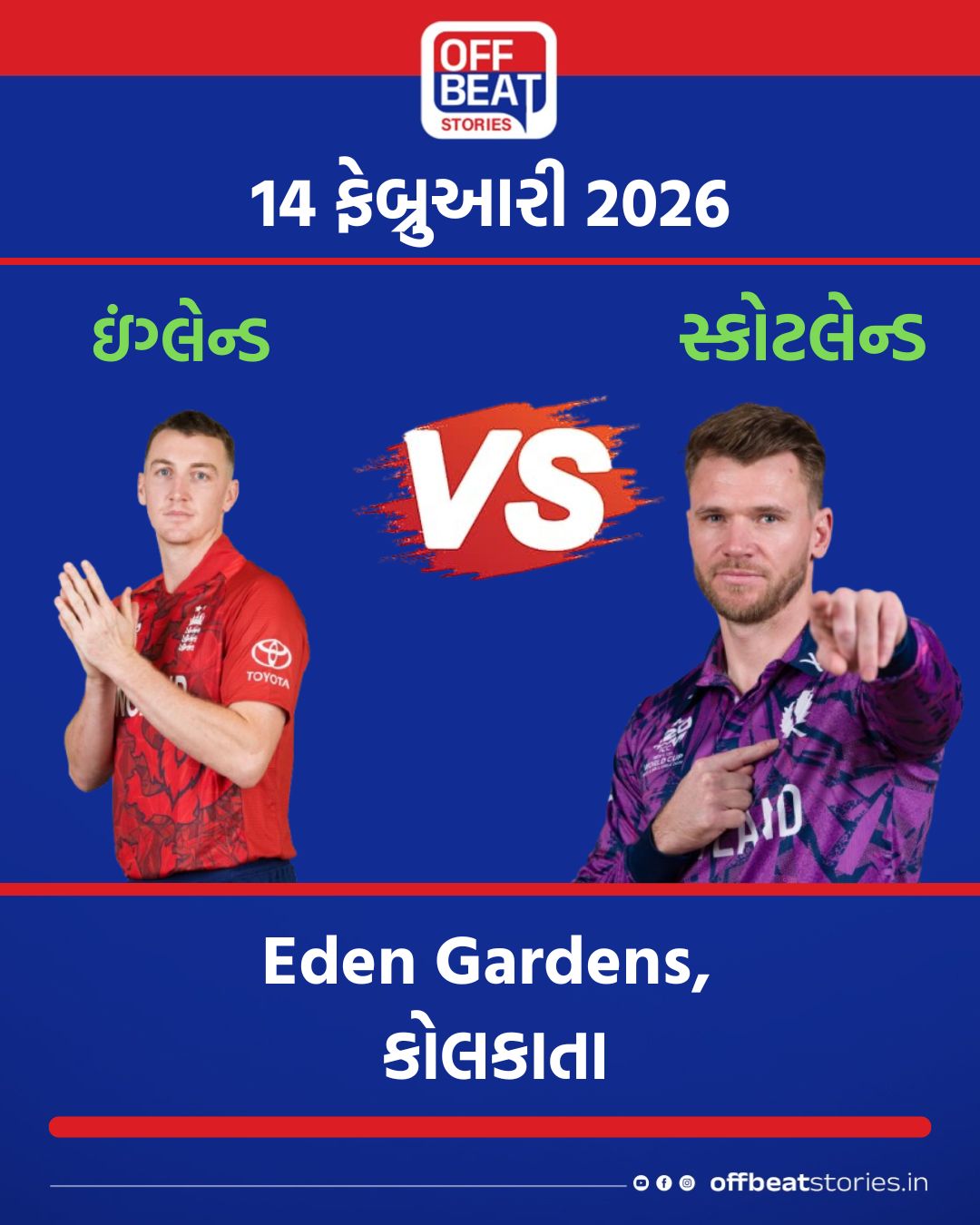 ઇડન ગાર્ડન્સ રમાનારી બીજી મેચમાં ઇંગ્લેન્ડનો મુકાબલો સ્કોટલેન્ડ સામે થશે. ઇંગ્લેન્ડની ટીમ નેપાળ સામે માંડ 4 રનથી જીતી હતી અને વેસ્ટ ઇન્ડિઝ સામે તેને હારનો સામનો કરવો પડ્યો હતો. બીજી બાજુ, સ્કોટલેન્ડે ઇટલી સામે 207 રન બનાવીને ઇતિહાસ રચ્યો છે અને તેઓ વર્લ્ડ કપમાં 200 રન ફટકારનાર પ્રથમ એસોસિયેટ ટીમ બની છે. હેરી બ્રુકની કેપ્ટન્સીમાં ઇંગ્લેન્ડ આ મેચ જીતીને લય પાછી મેળવવા પ્રયાસ કરશે, જ્યારે સ્કોટલેન્ડ મોટો ઉલટફેર કરવા તૈયાર છે.