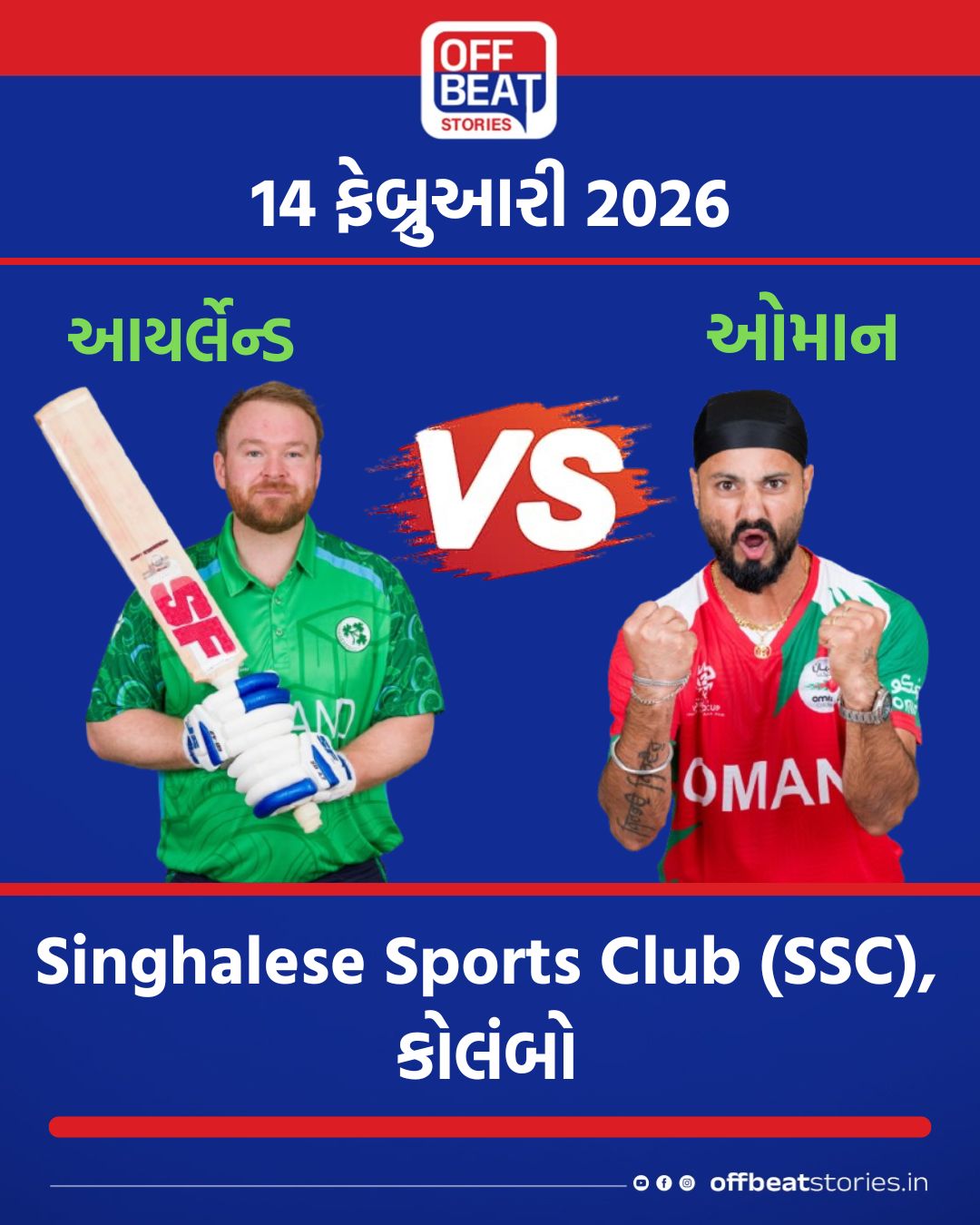 આજની પહેલી મેચ કોલંબોના SSC ગ્રાઉન્ડ પર રમાશે, જ્યાં આયર્લેન્ડ અને ઓમાન આમને-સામને હશે. આયર્લેન્ડ અત્યાર સુધી તેની બંને મેચો (શ્રીલંકા અને ઓસ્ટ્રેલિયા સામે) હારી ચૂક્યું છે, ખાસ કરીને ઓસ્ટ્રેલિયા સામે તેઓ માત્ર 115 રનમાં ઓલઆઉટ થઈ ગયા હતા. બીજી તરફ, ઓમાન પણ ઝિમ્બાબ્વે અને શ્રીલંકા સામે પરાજય મેળવીને સંઘર્ષ કરી રહ્યું છે. બંને ટીમો માટે આ મેચ ટુર્નામેન્ટમાં ટકી રહેવા અને જીતનું ખાતું ખોલાવવા માટે અત્યંત મહત્વની સાબિત થશે.