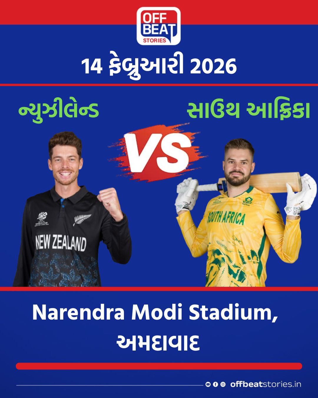 આજની સૌથી મોટી અને અંતિમ મેચ અમદાવાદના નરેન્દ્ર મોદી સ્ટેડિયમમાં રમાશે, જે 'ગ્રુપ ઓફ ડેથ' ની નિર્ણાયક મેચ છે. ન્યુઝીલેન્ડ અત્યાર સુધી અફઘાનિસ્તાન અને UAE ને હરાવીને શાનદાર ફોર્મમાં છે. જોકે, સાઉથ આફ્રિકાનો આત્મવિશ્વાસ સાતમા આસમાને છે, કારણ કે, તેઓ અફઘાનિસ્તાન સામેની છેલ્લી મેચ 'ડબલ સુપર ઓવર' માં જીતીને અહીં પહોંચ્યા છે. મિશેલ સેન્ટનરની કીવી બ્રિગેડ અને સાઉથ આફ્રિકાના દિગ્ગજો વચ્ચેનો આ મુકાબલો ટુર્નામેન્ટની સૌથી યાદગાર મેચ બની શકે છે.