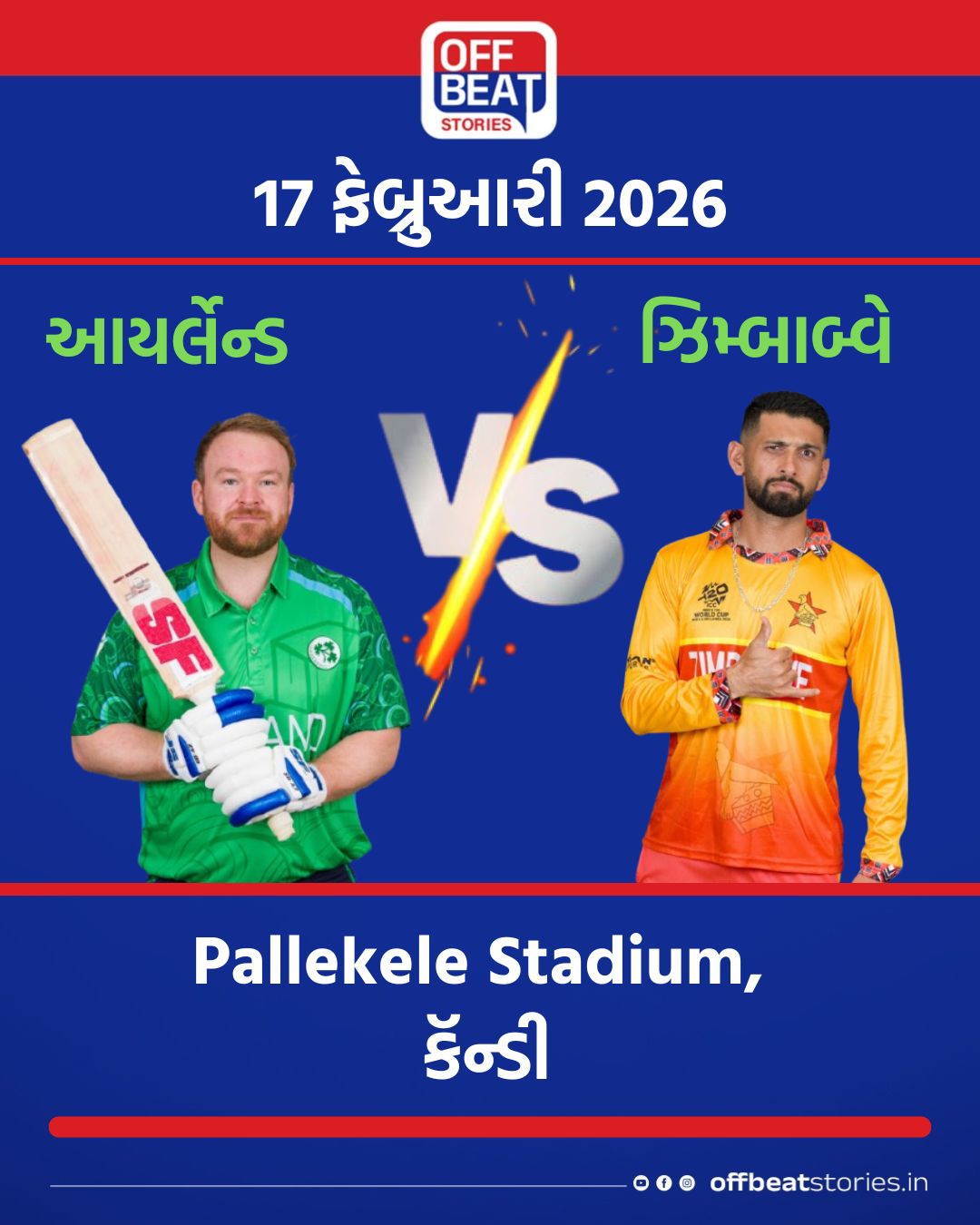 32 | આયર્લેન્ડ vs ઝિમ્બાબ્વે | Pallekele Stadium, કૅન્ડી | બપોરે 03:00 | પોલ સ્ટર્લિંગ/સિકંદર રઝા |