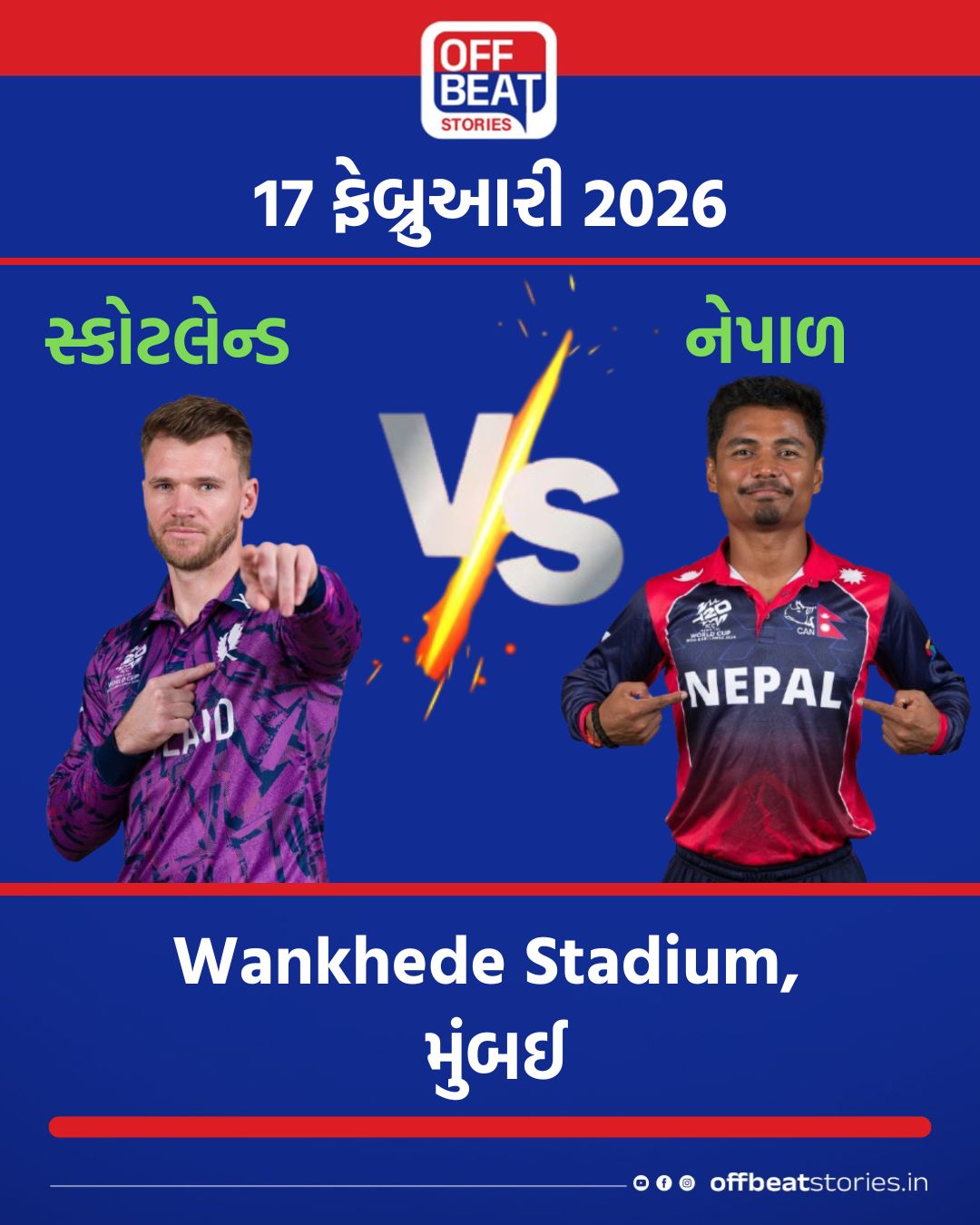 33 | સ્કોટલેન્ડ vs નેપાળ | Wankhede Stadium, મુંબઈ | સાંજે 07:00 | રિચી બેરિંગ્ટન/રોહિત પૌડેલ |