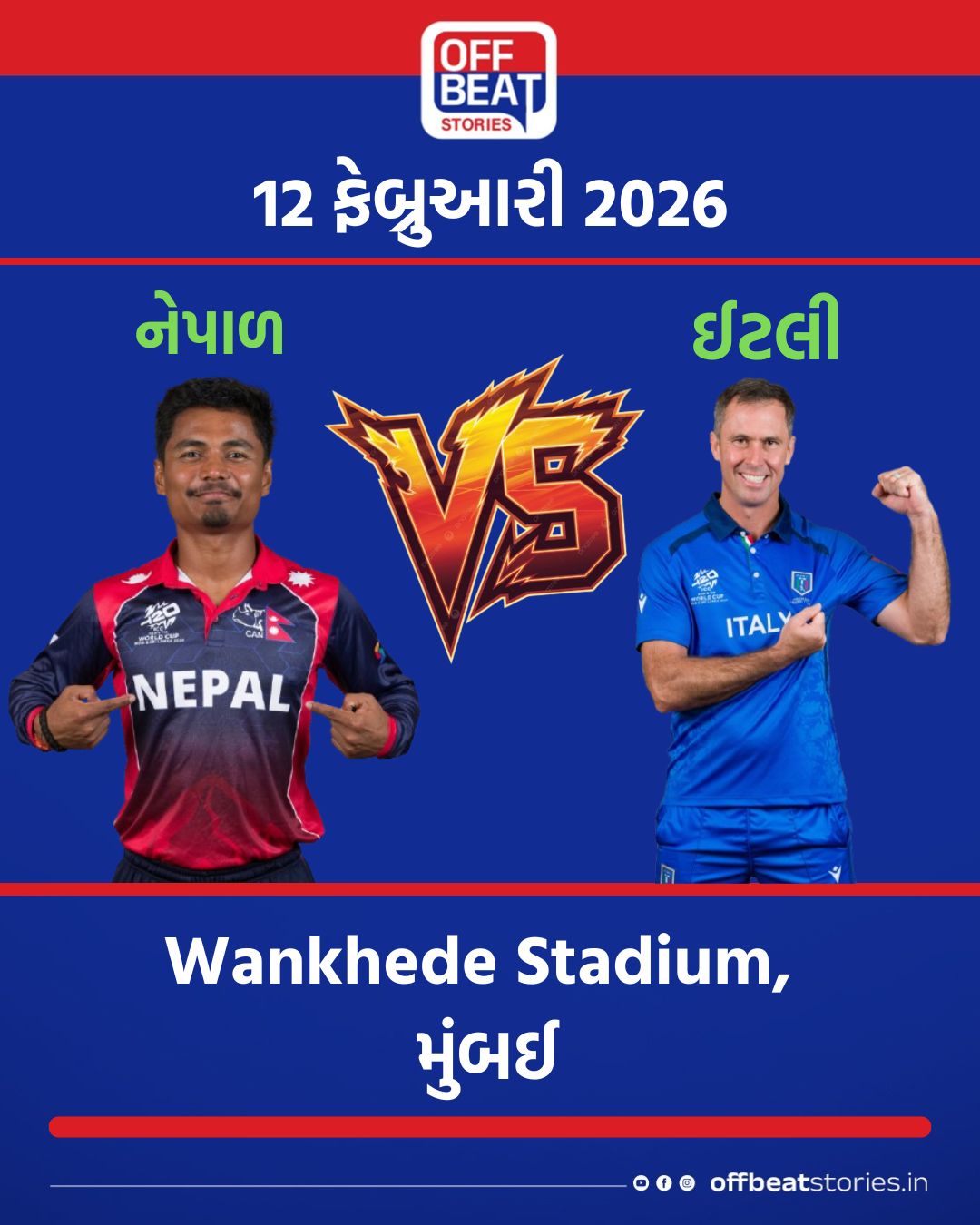 મેચ 17 : નેપાળ vs ઇટાલી (બપોરે 3:00 વાગ્યે, વાનખેડે સ્ટેડિયમ)